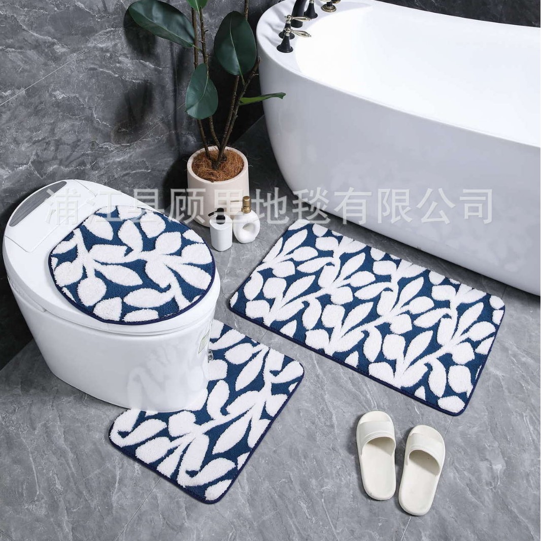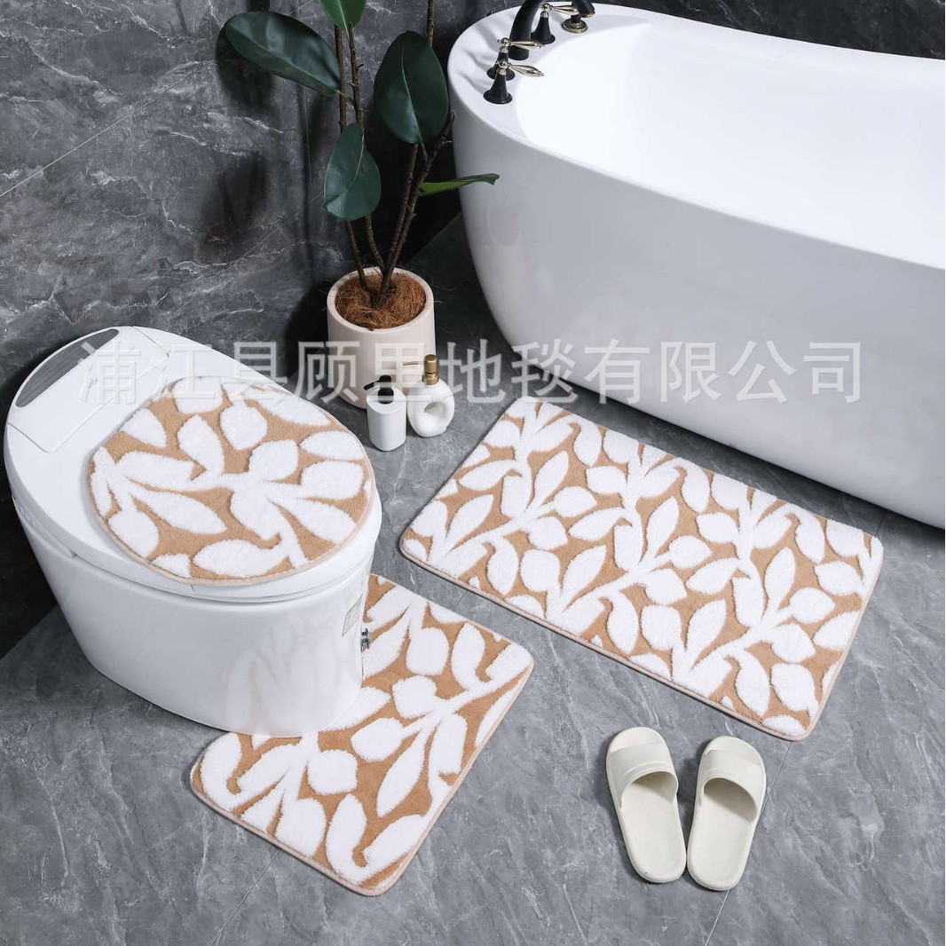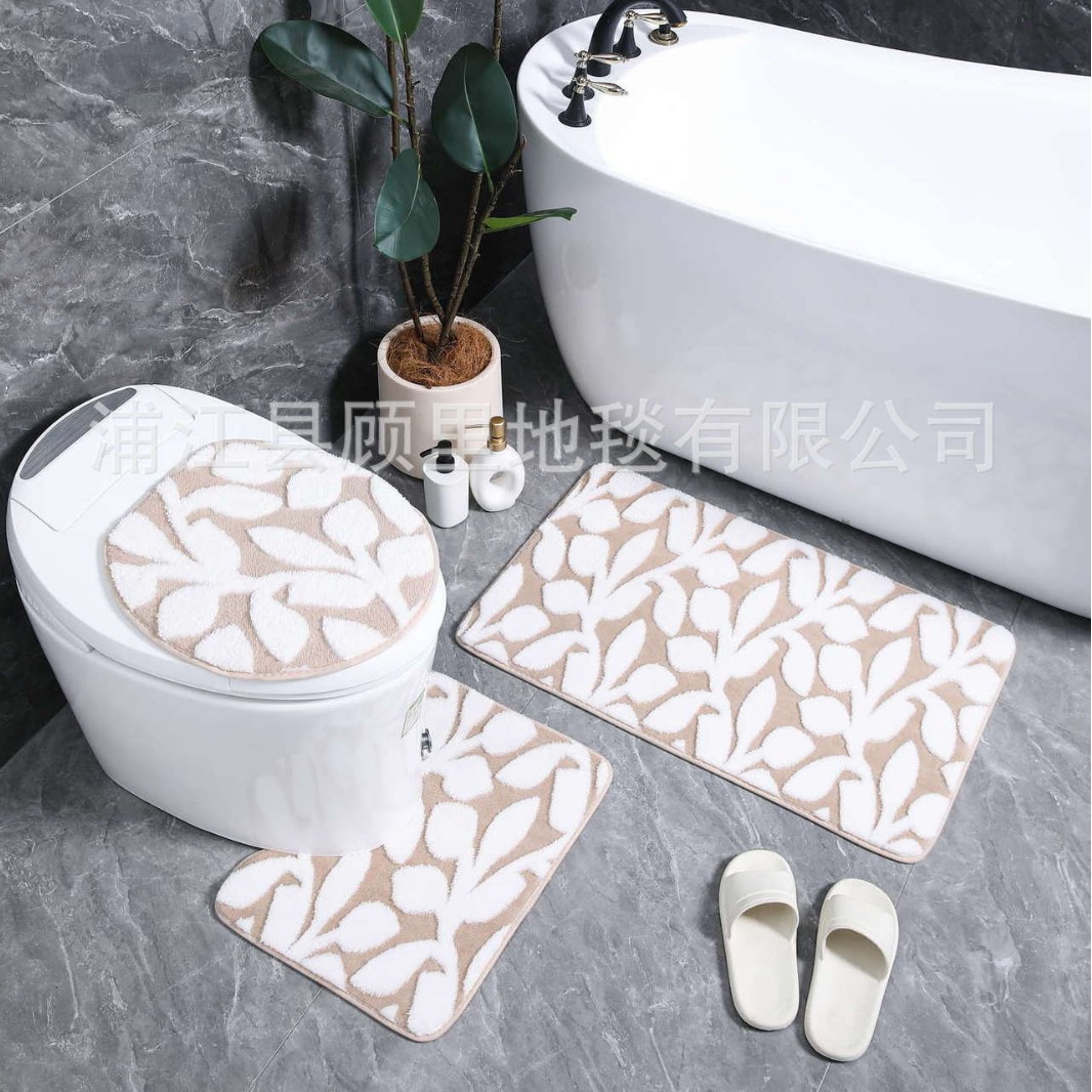 cross-border foreign trade cationic jacquard flower branch carpet three-piece set door mat water-absorbing non-slip floor mat household dirt-resistant foot pad
