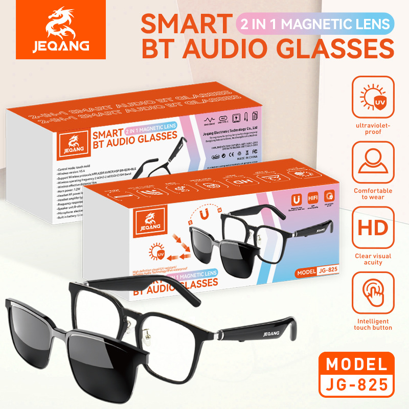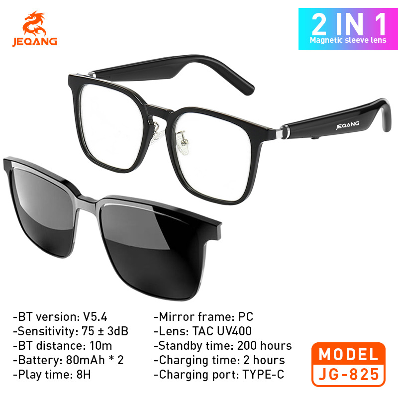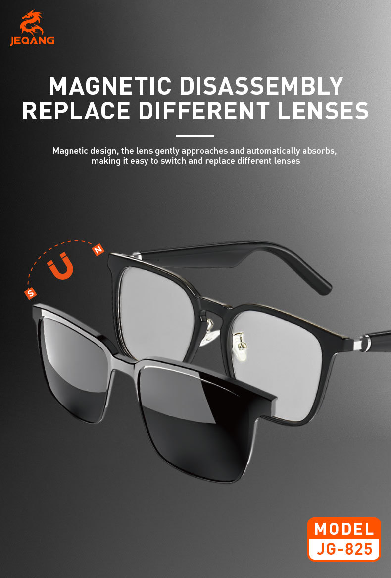cross-border magnetic smart bluetooth glasses, color-changing, support music audio, with optical lens, uv- and blue-light-blocking polarized sunglasses