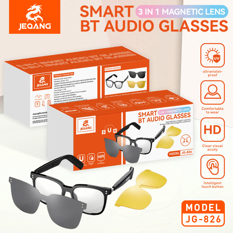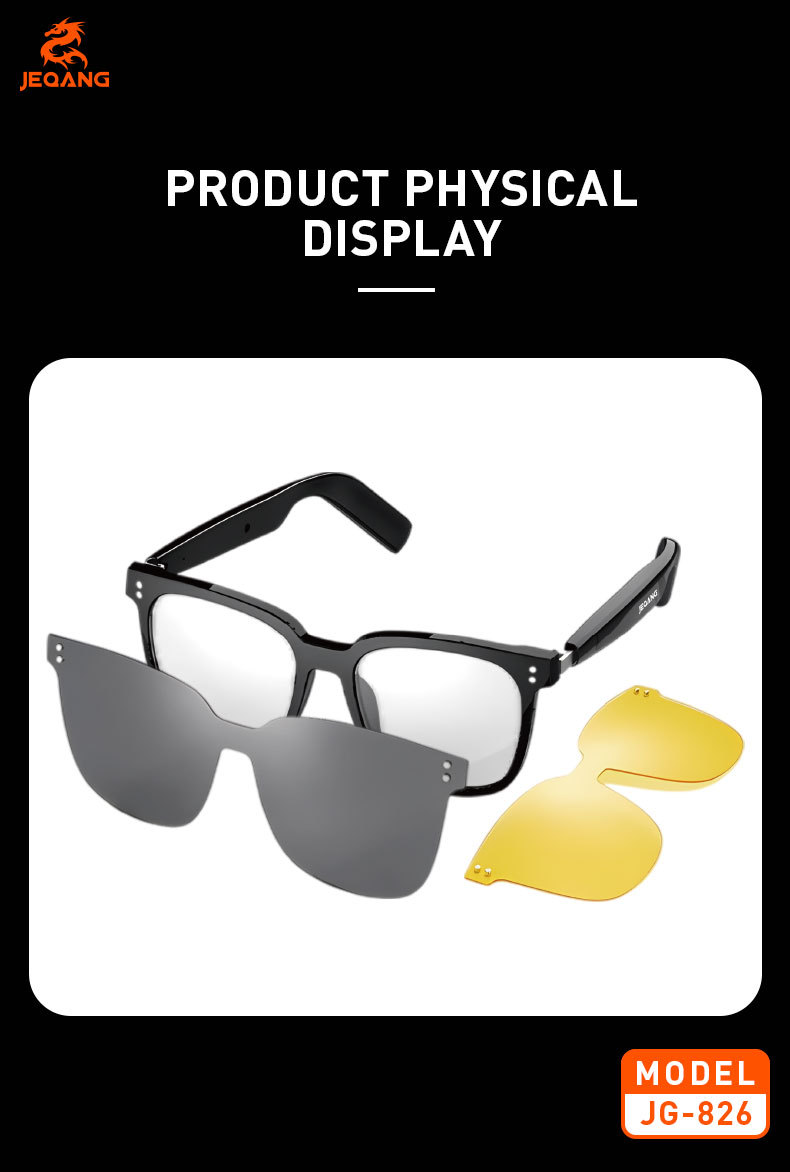 cross-border magnetic smart bluetooth glasses, color-changing, support music audio, with optical lens, uv- and blue-light-blocking polarized sunglasses