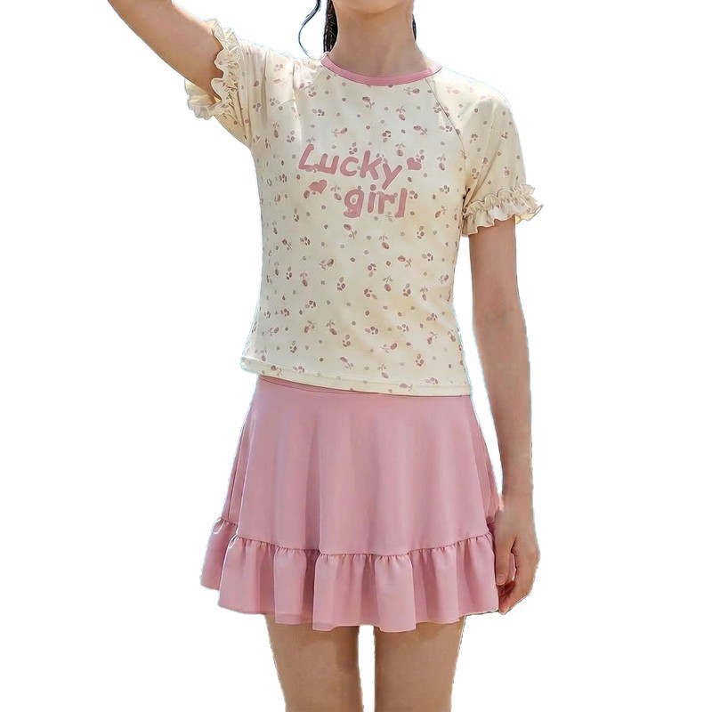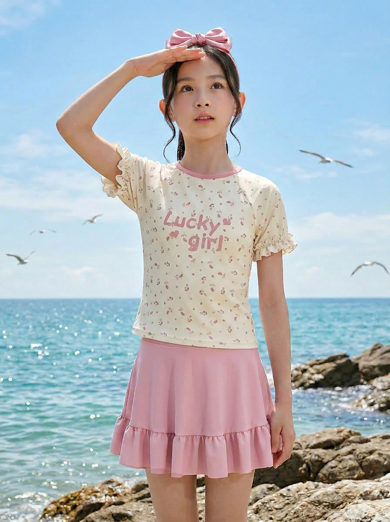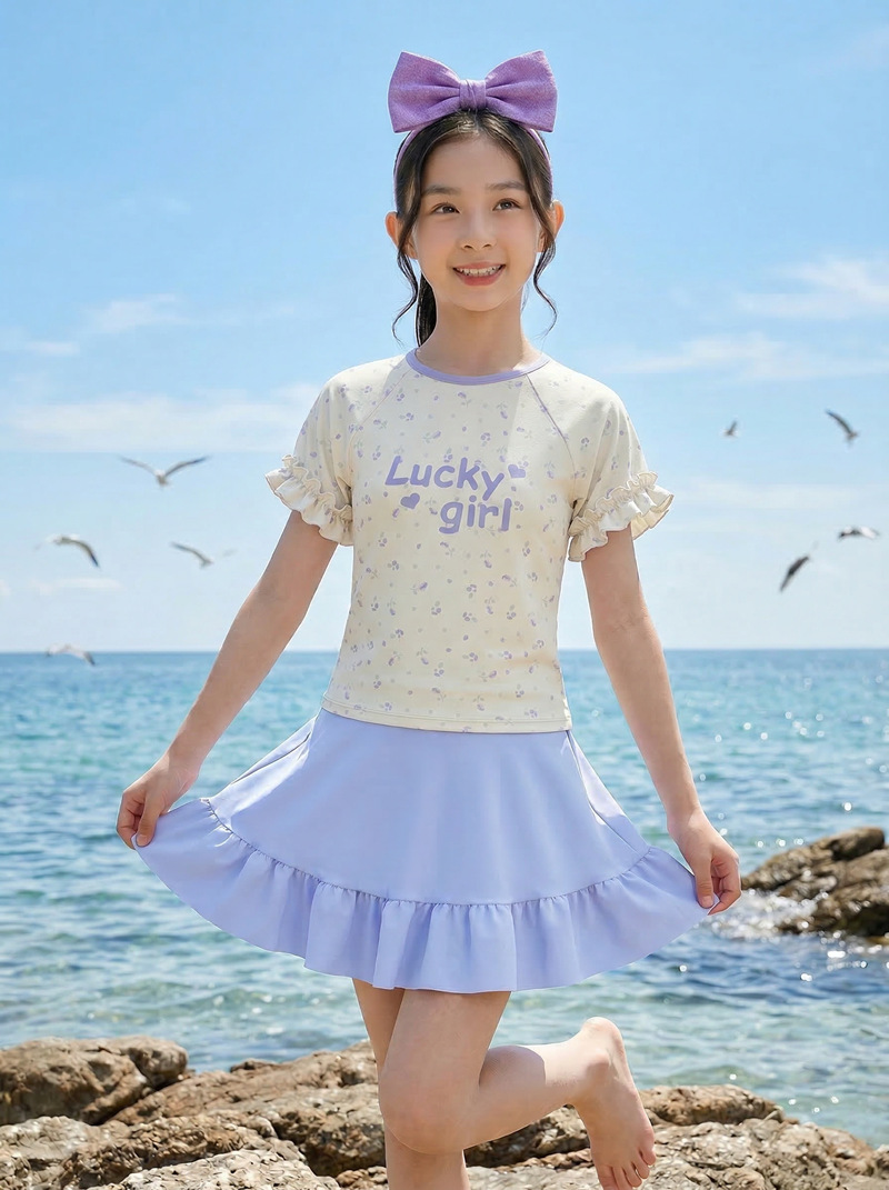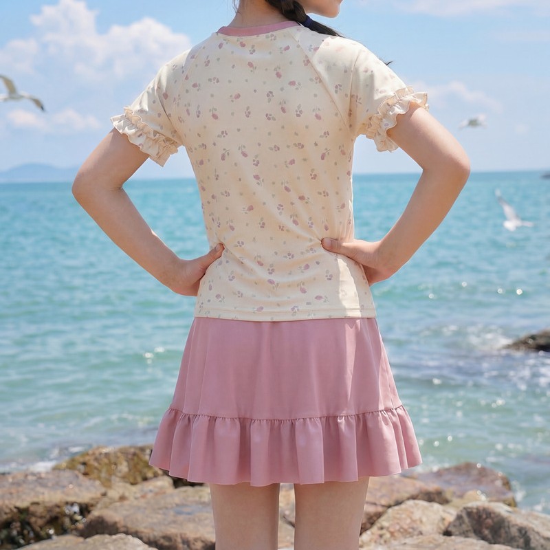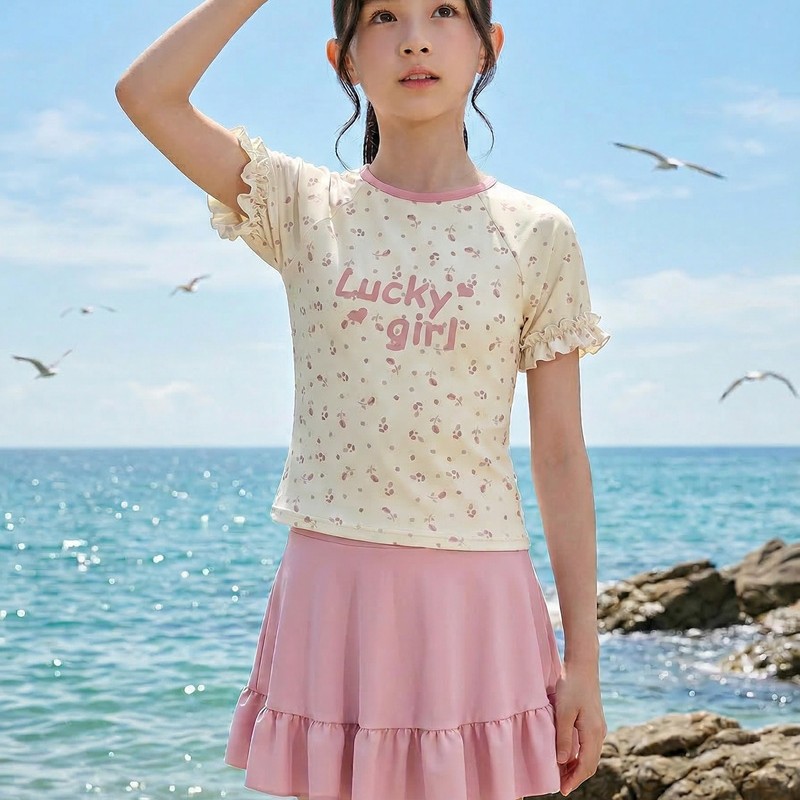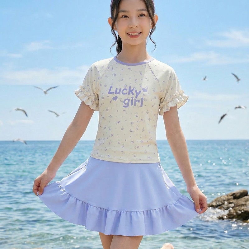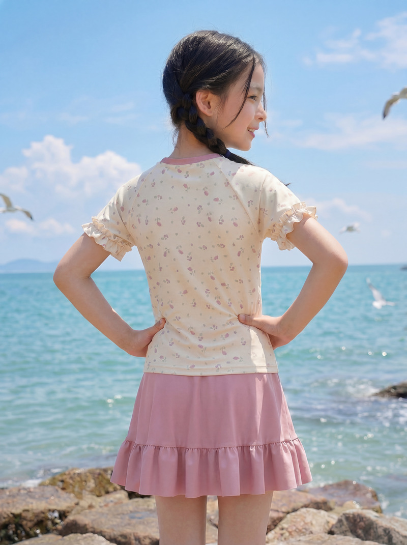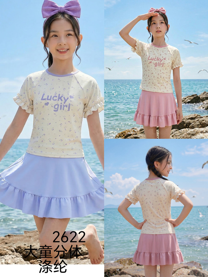 中童分体裙式沙滩温泉泳衣 涤亚面料.弹力好.手感舒服.