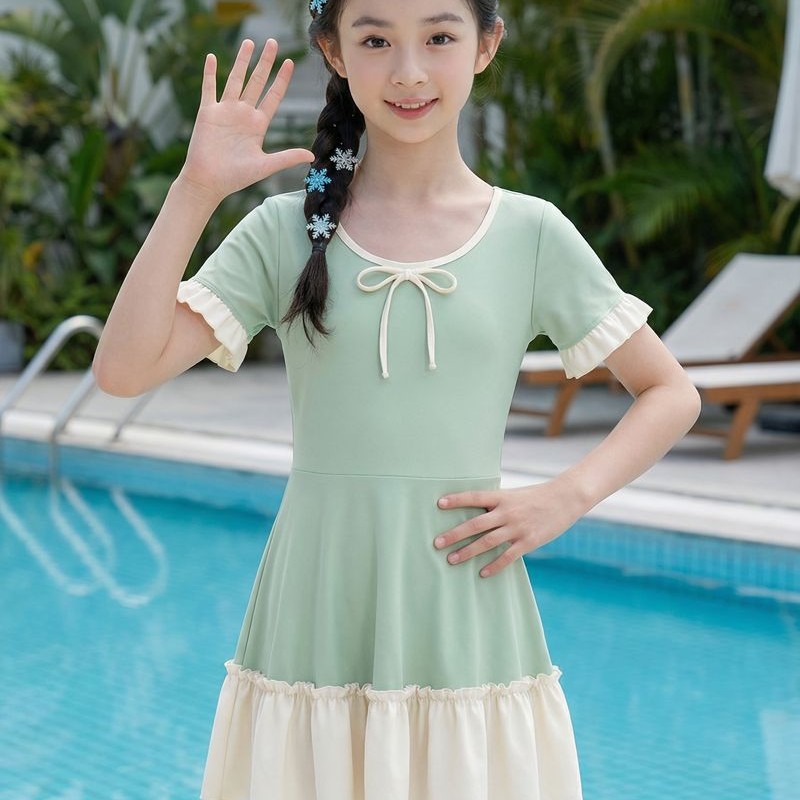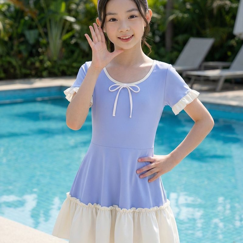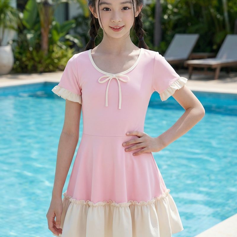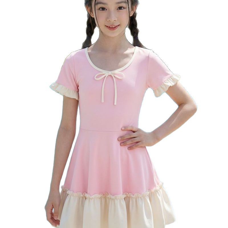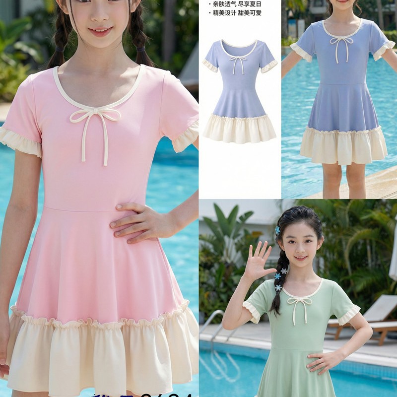 大童连体公主裙式游泳衣 涤纶 手感舒服 弹力大