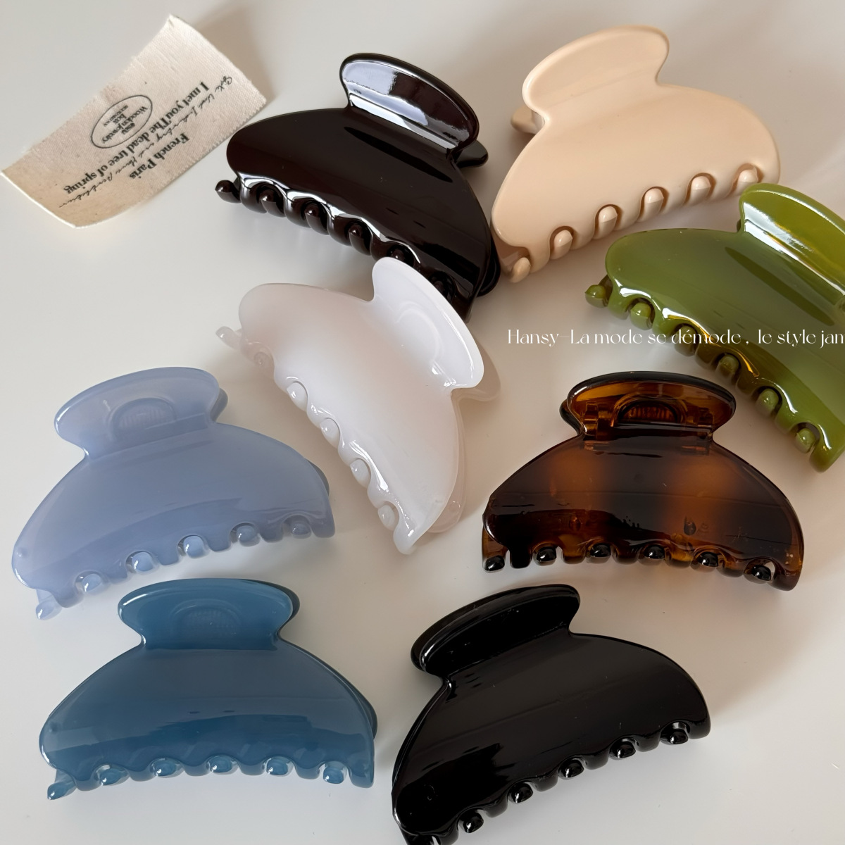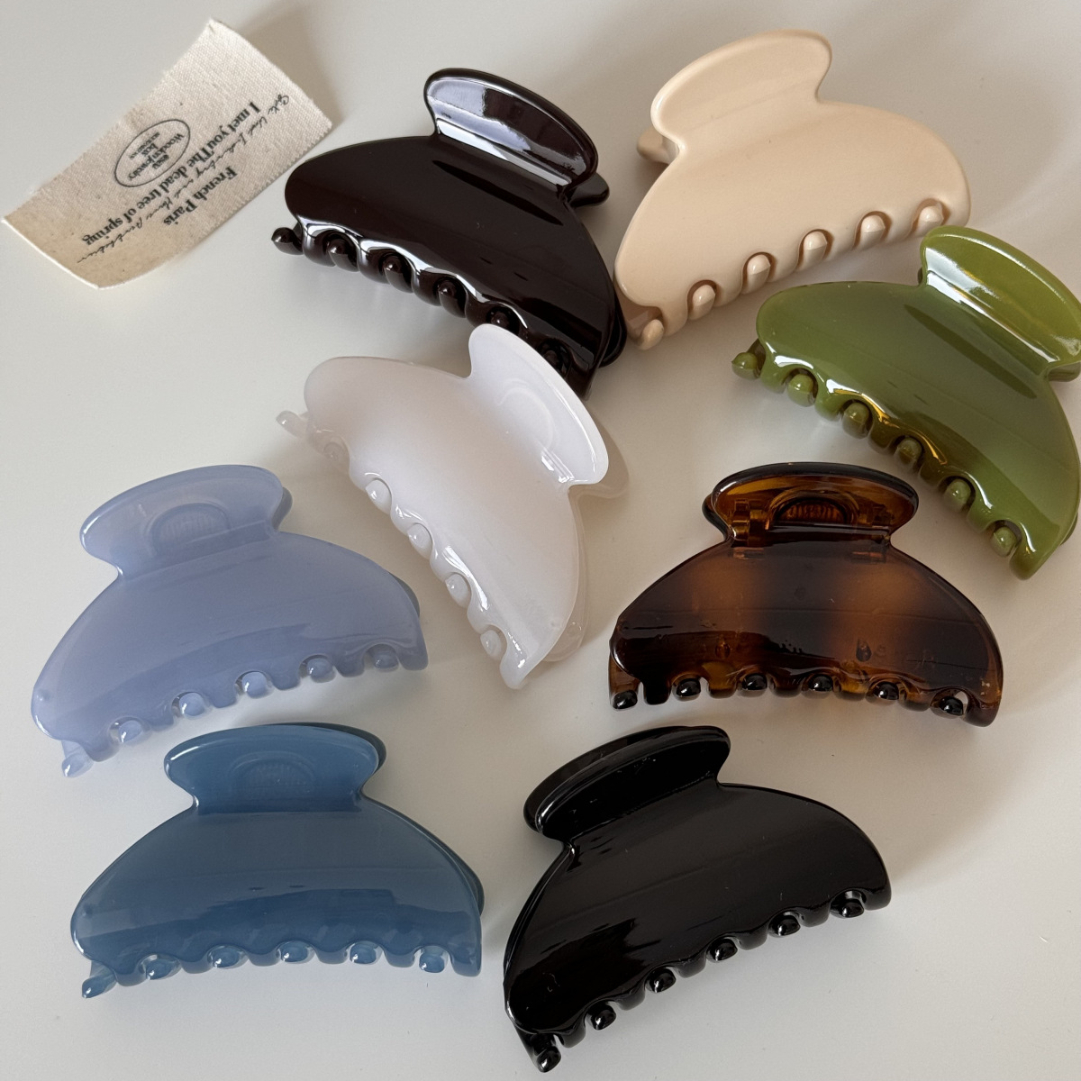 shiny small fan-shaped clip-milky white