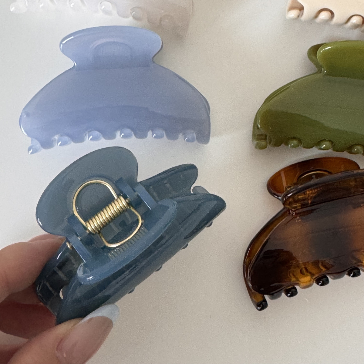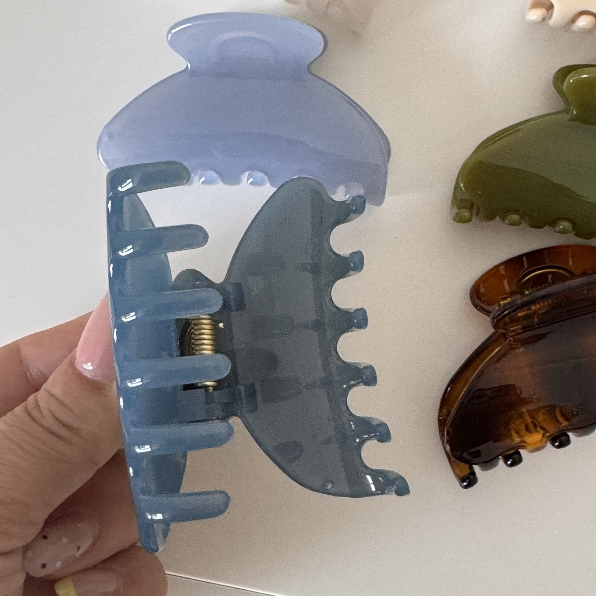 shiny small fan-shaped claw clip-light blue