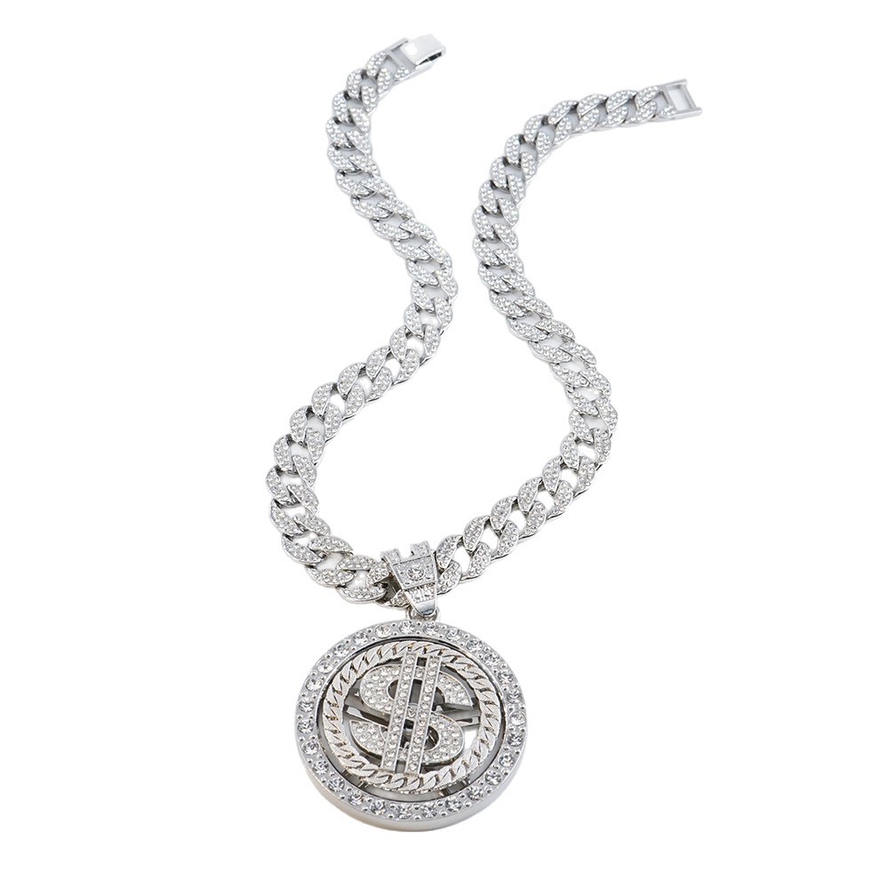 silver pendant with a 20-inch cuban link chain