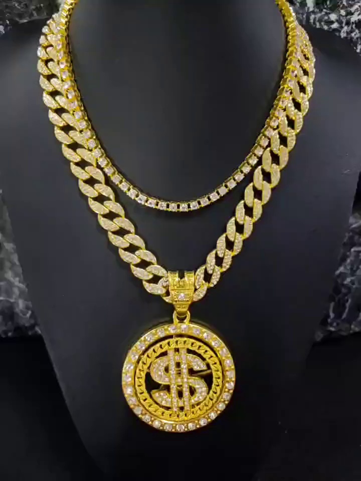 gold pendant with a 24-inch cuban link chain