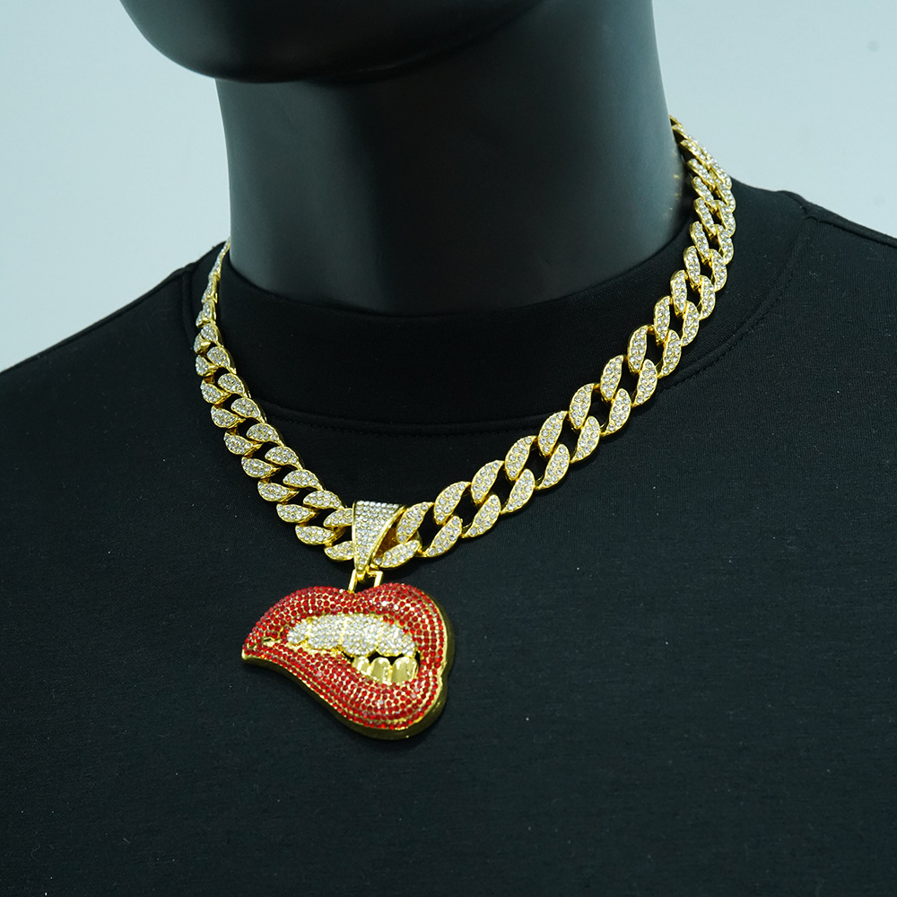golden red lips paired with an 18-inch cuban link chain.