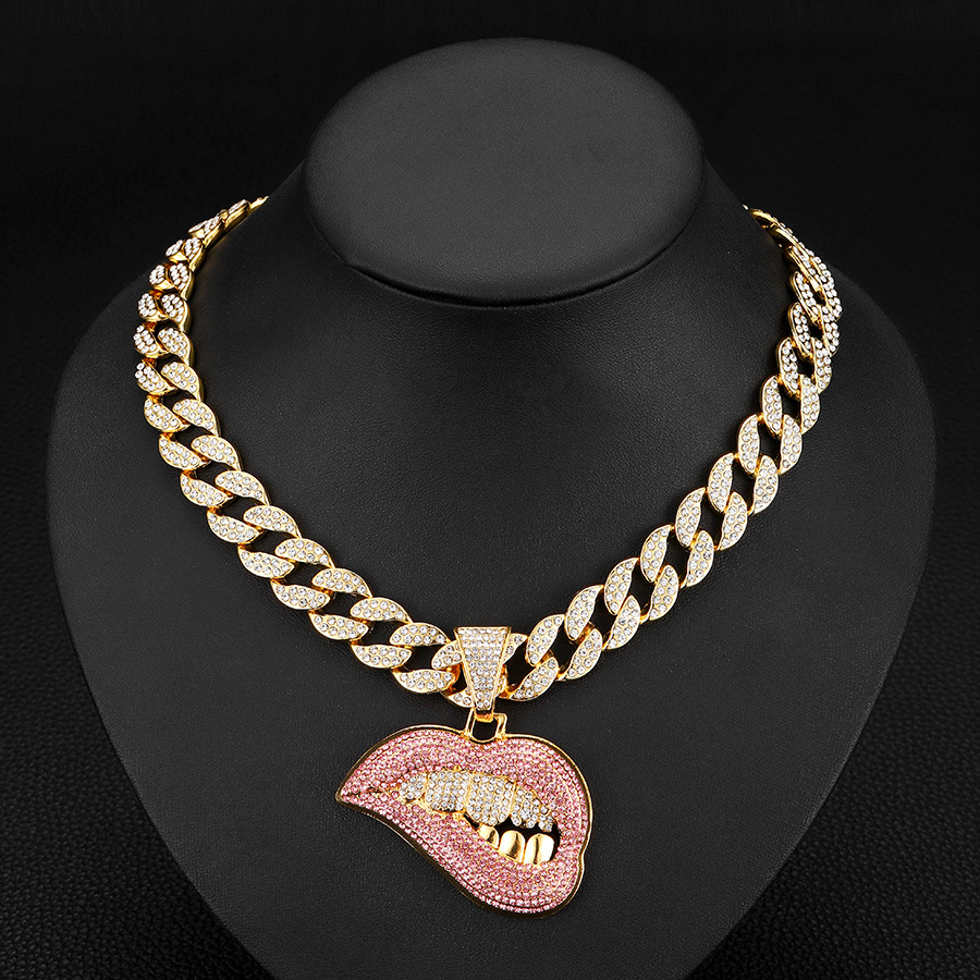 golden pink lips paired with an 18-inch cuban link chain.