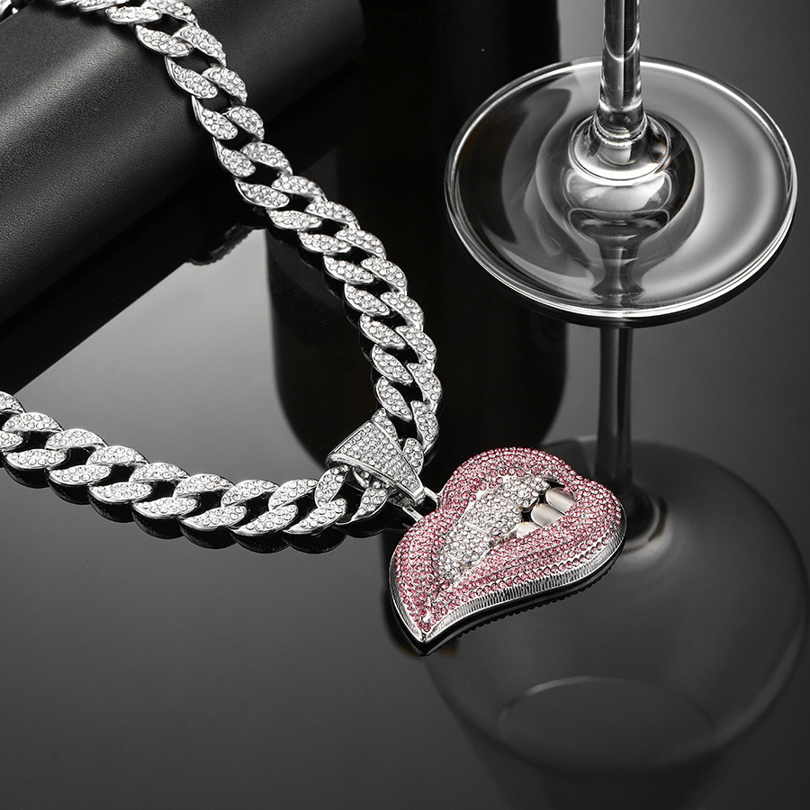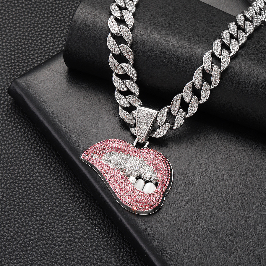 silver red lips with an 18-inch cuban link chain