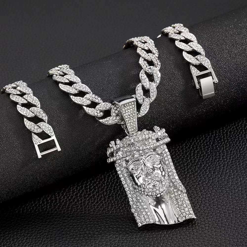 silver pendant with a 20-inch cuban link chain
