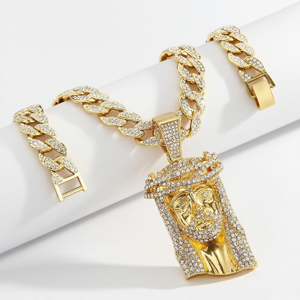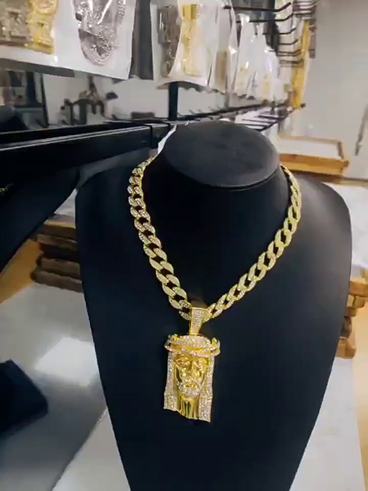 gold pendant with a 20-inch cuban link chain
