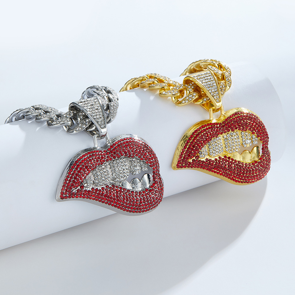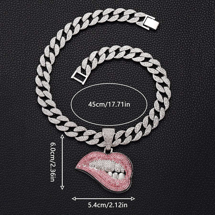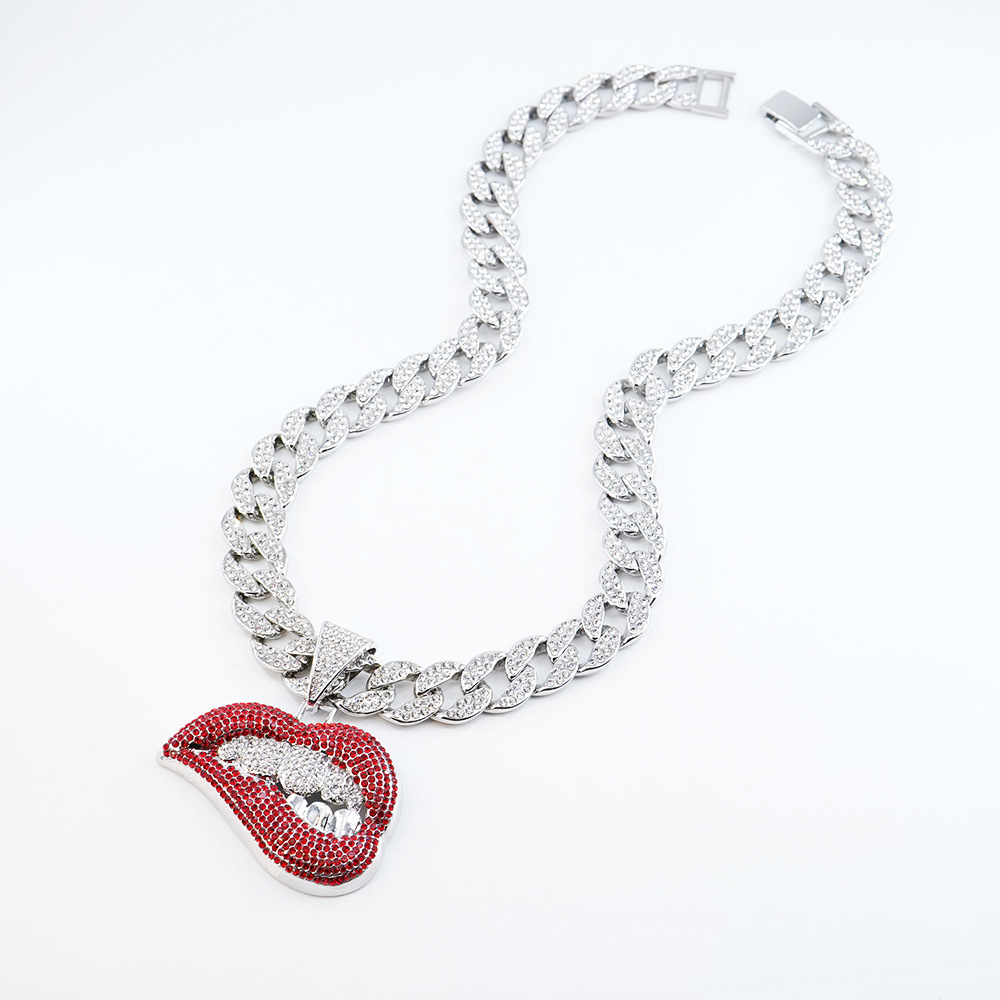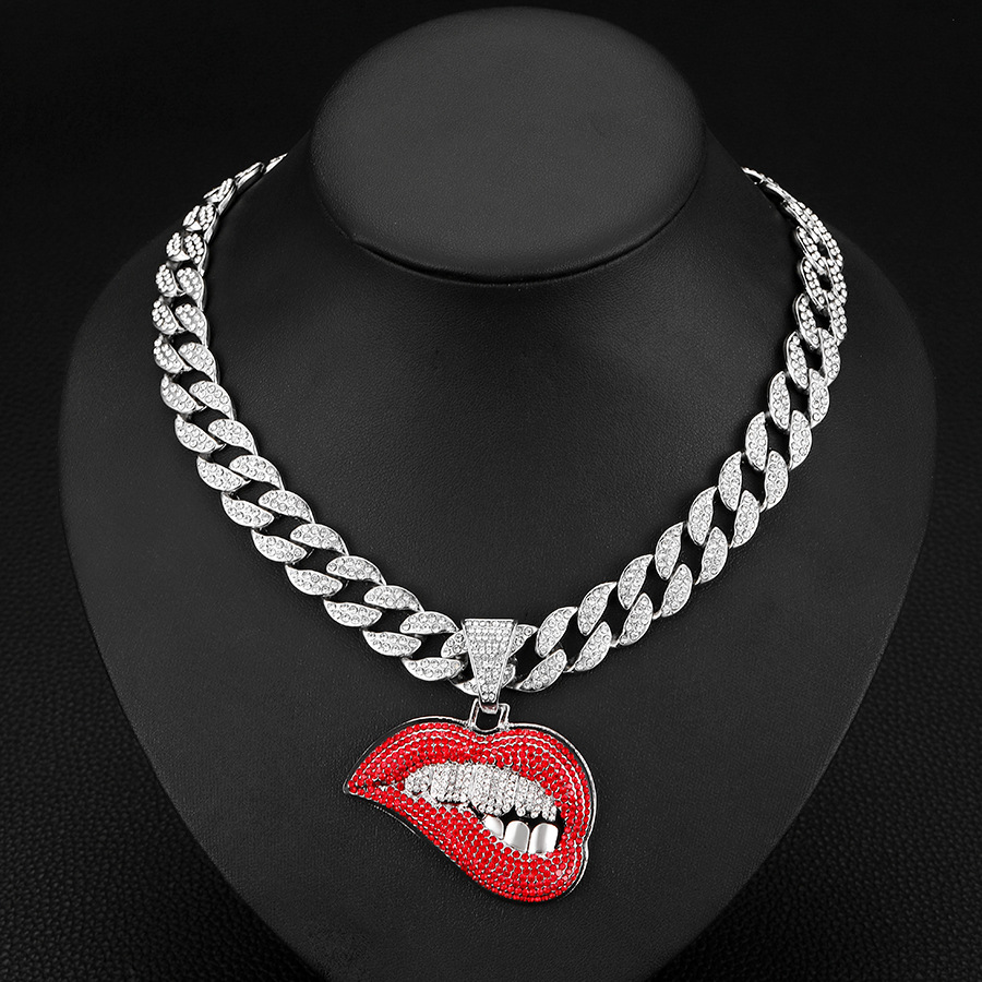 silver red lips with an 18-inch cuban link chain