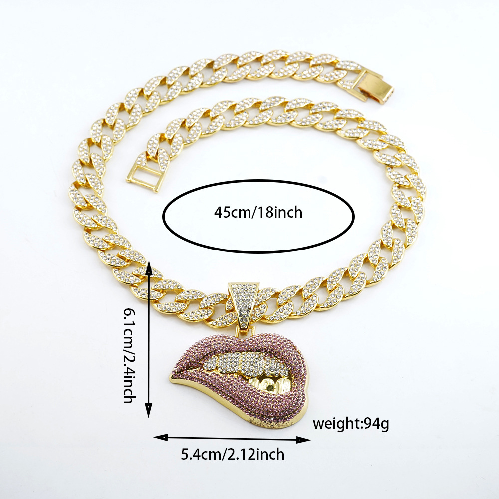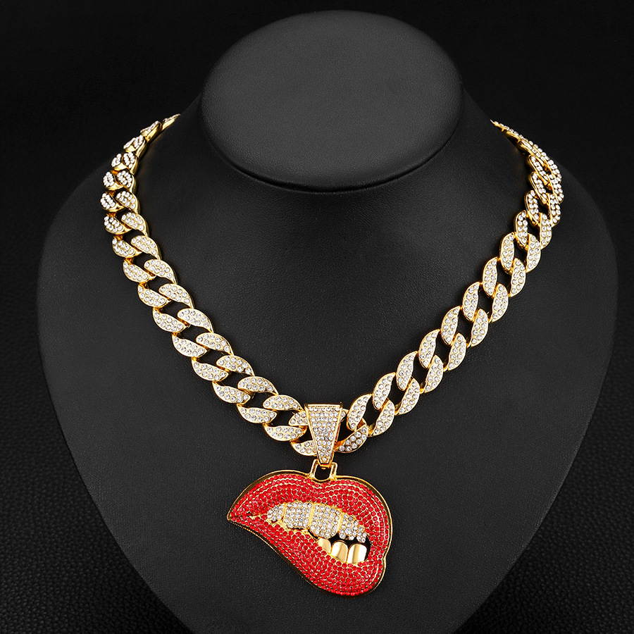 golden red lips paired with an 18-inch cuban link chain.