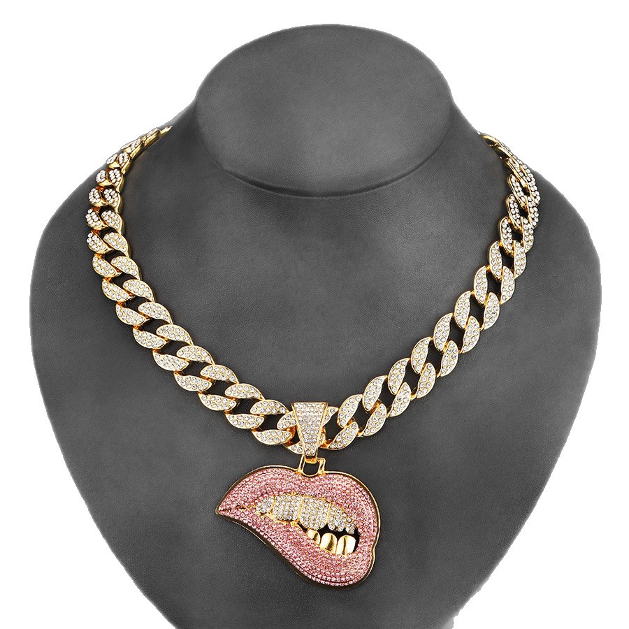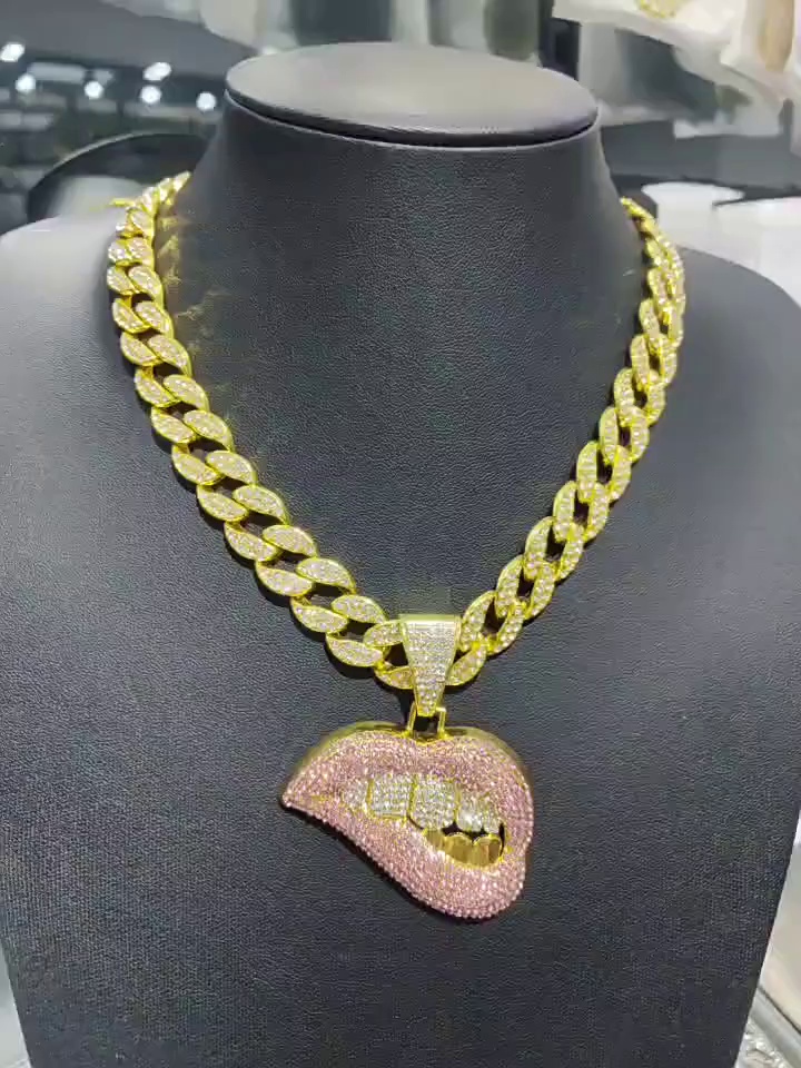 golden pink lips paired with an 18-inch cuban link chain.
