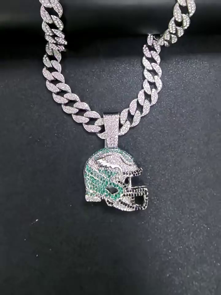 silver pendant with cuban link chain 45cm