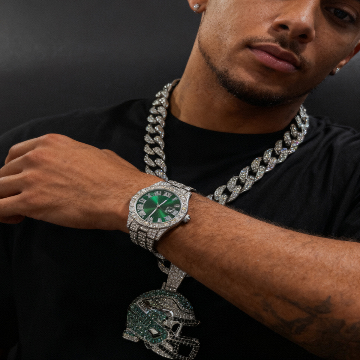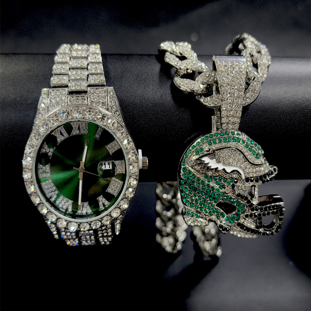 silver (watch + pendant + cuban link chain 45cm)