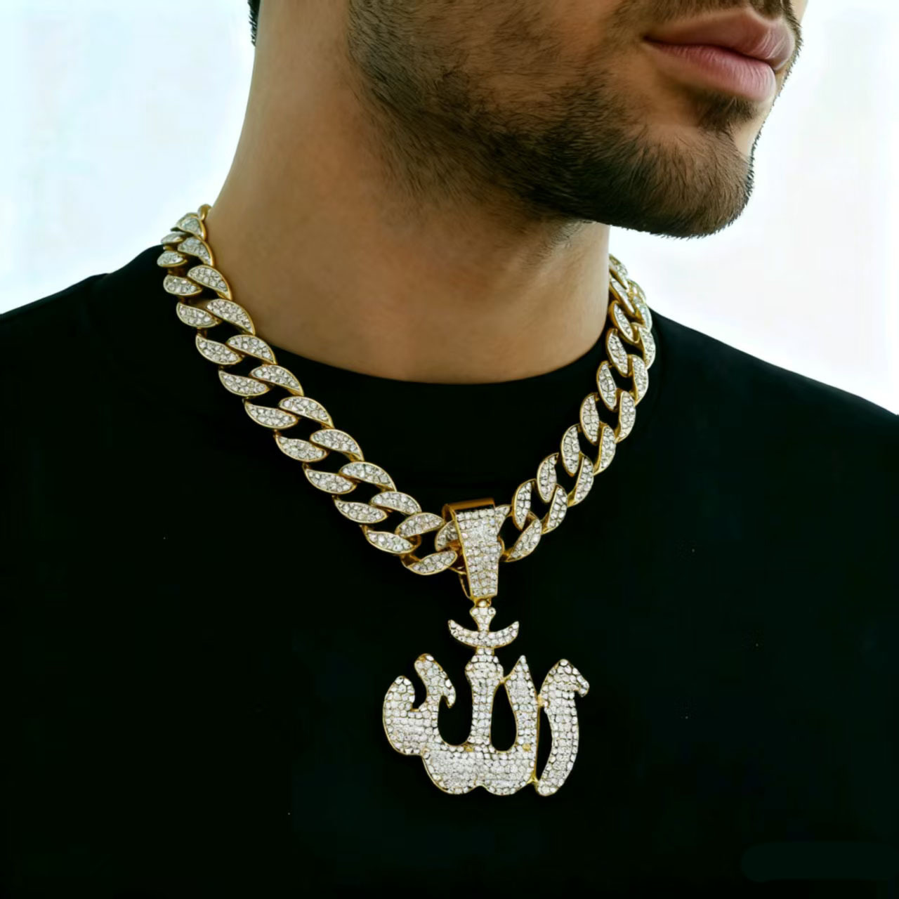 gold pendant with an 18-inch cuban link chain