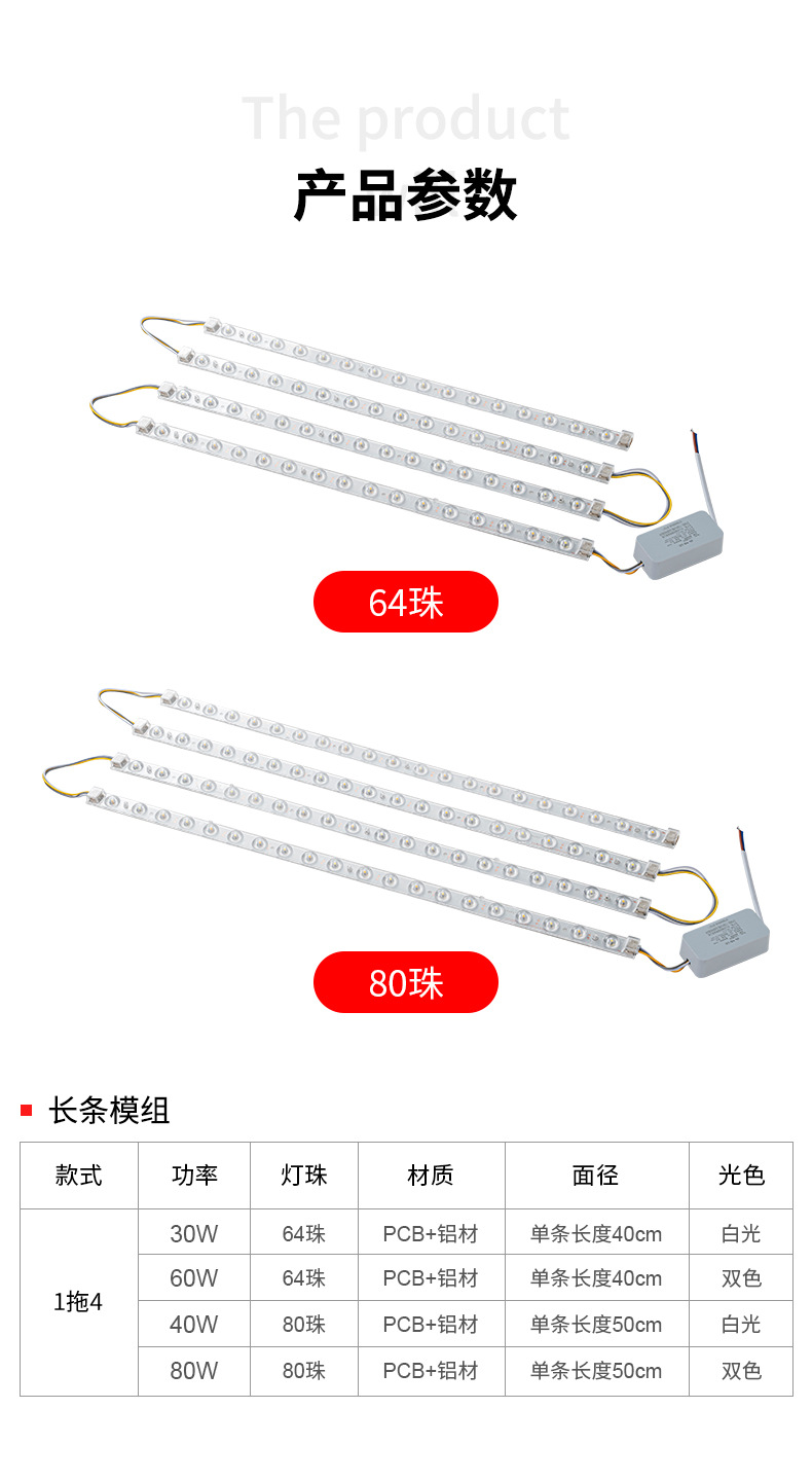 variable light with three colors, 1 to 4, 50cm per line.