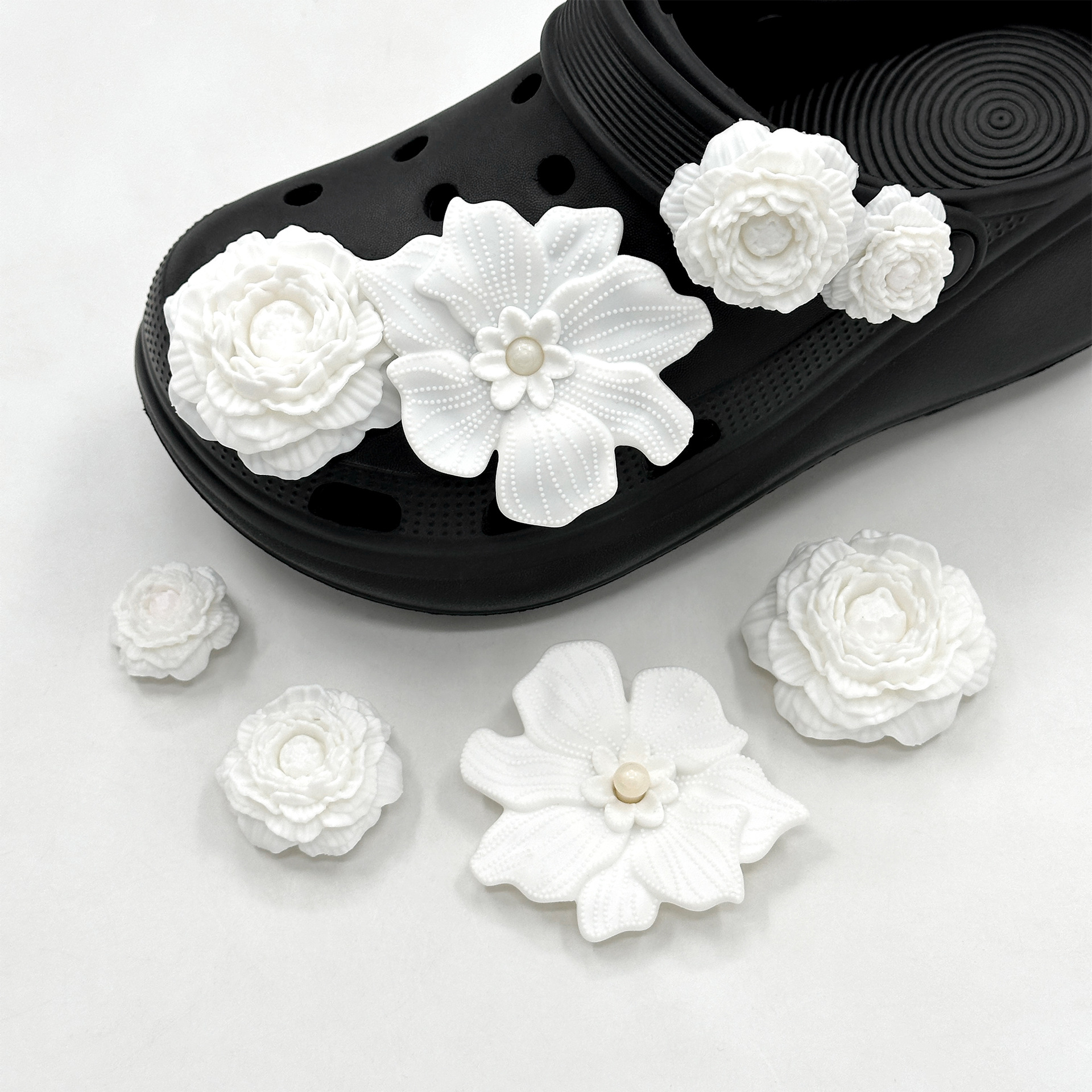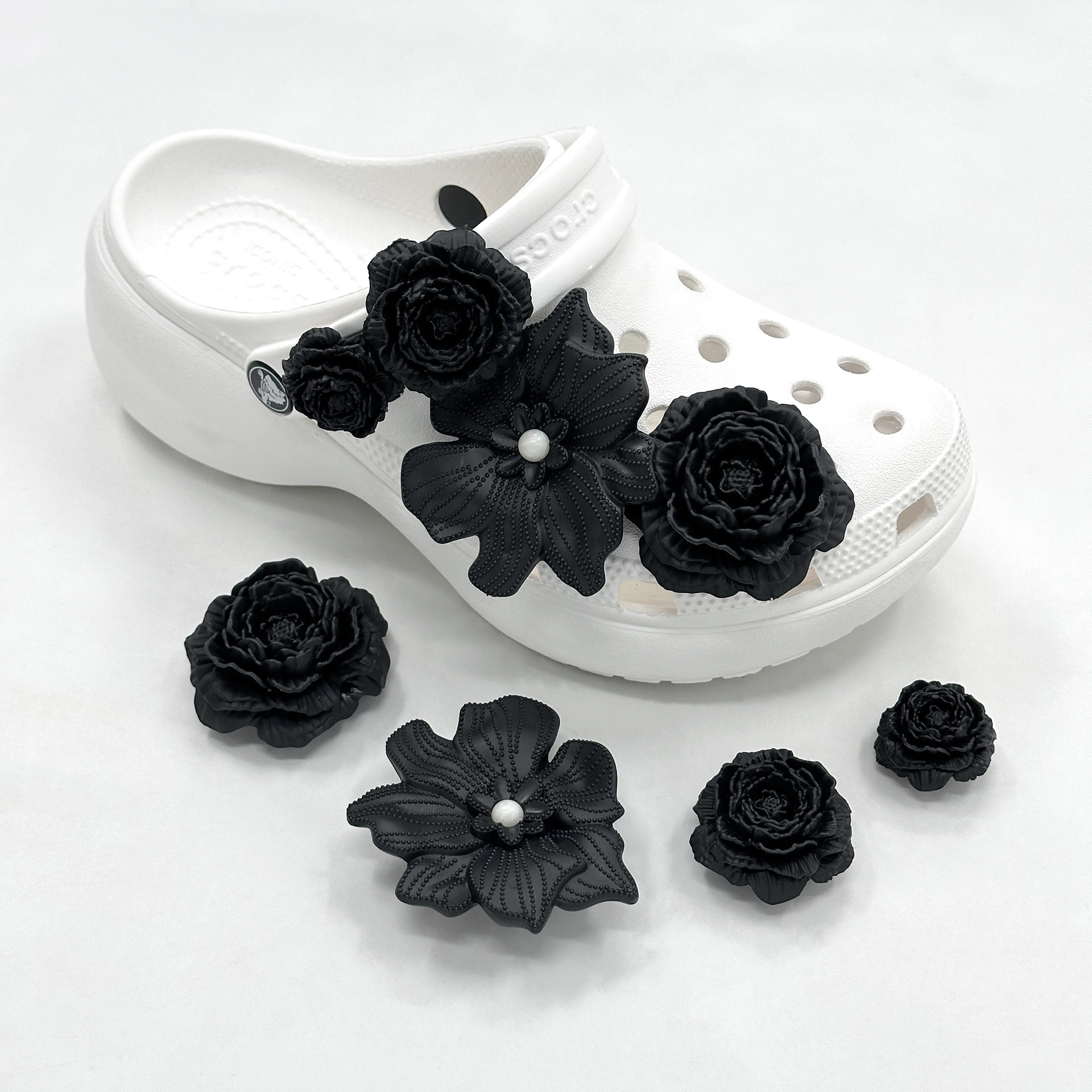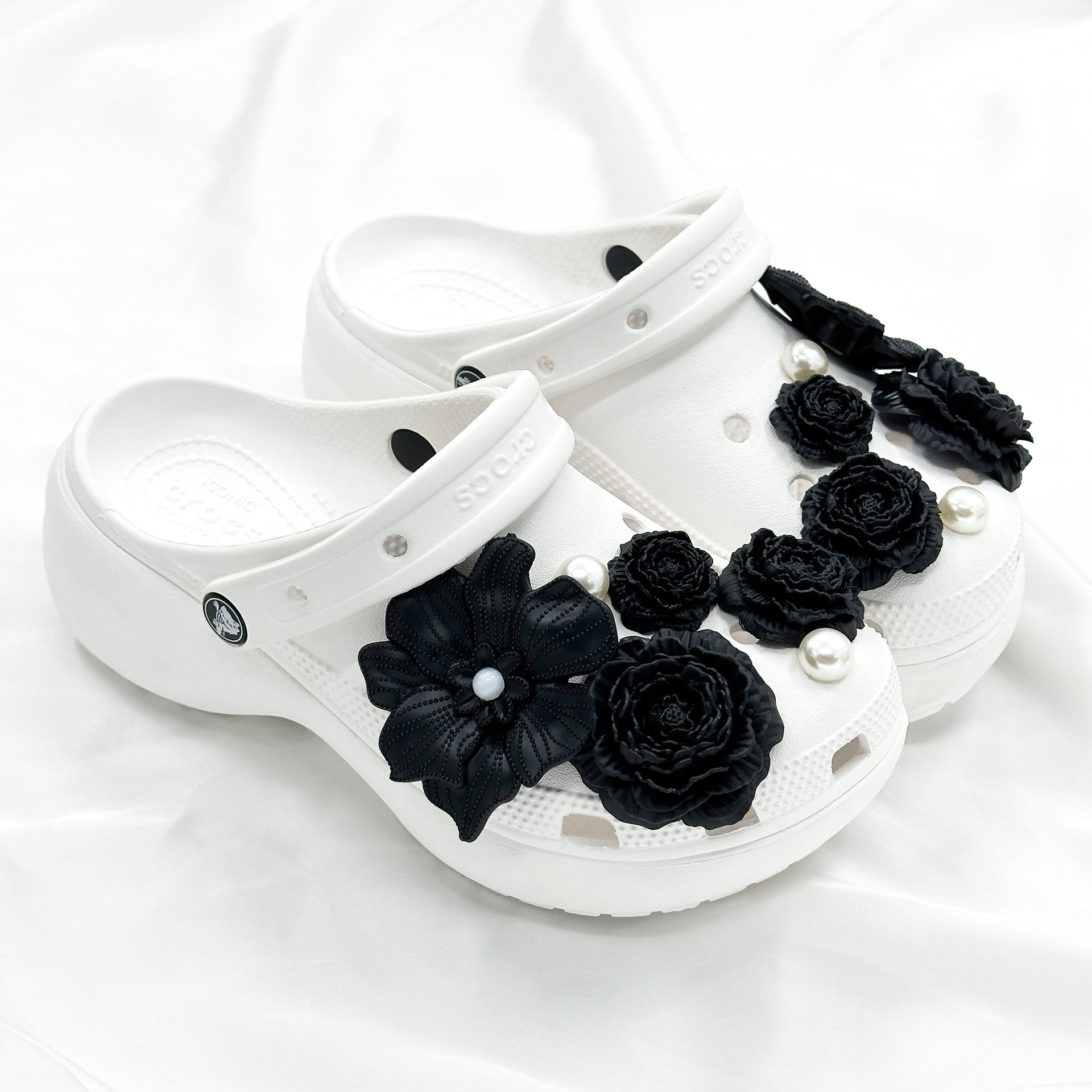 black soft floral pearl style