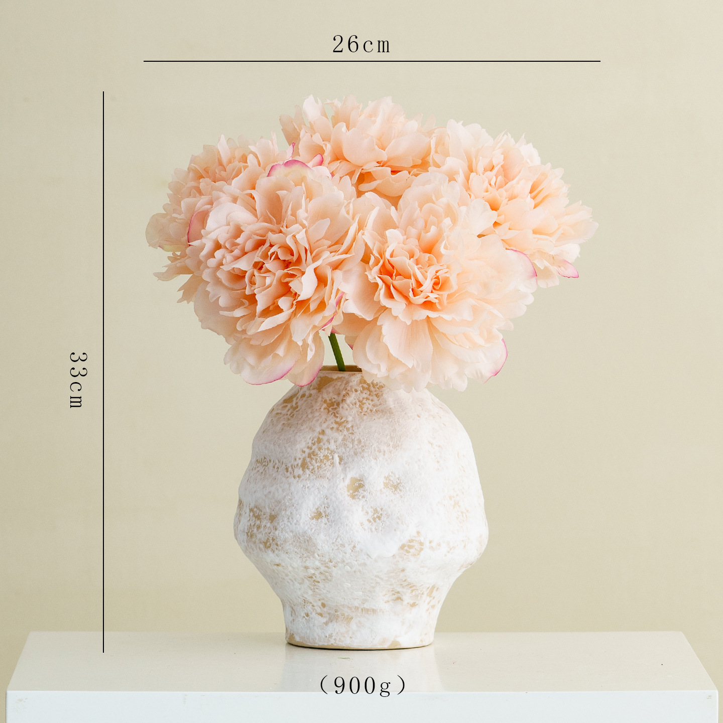 with poetry collection (white finish) +5 blossoming peony flowers (champagne color)