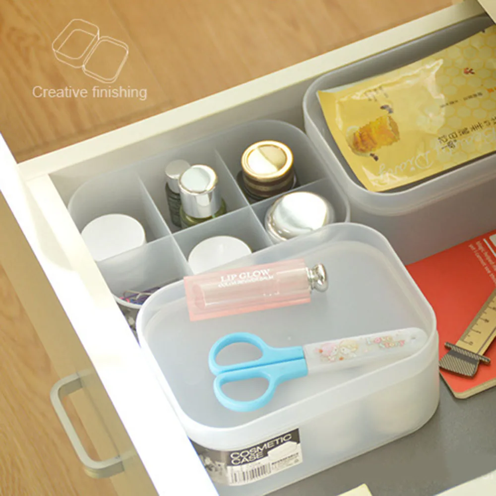 Cross Border Plastic Office Transparent Organizing Box Desktop Household Rectangular Storage Baskets