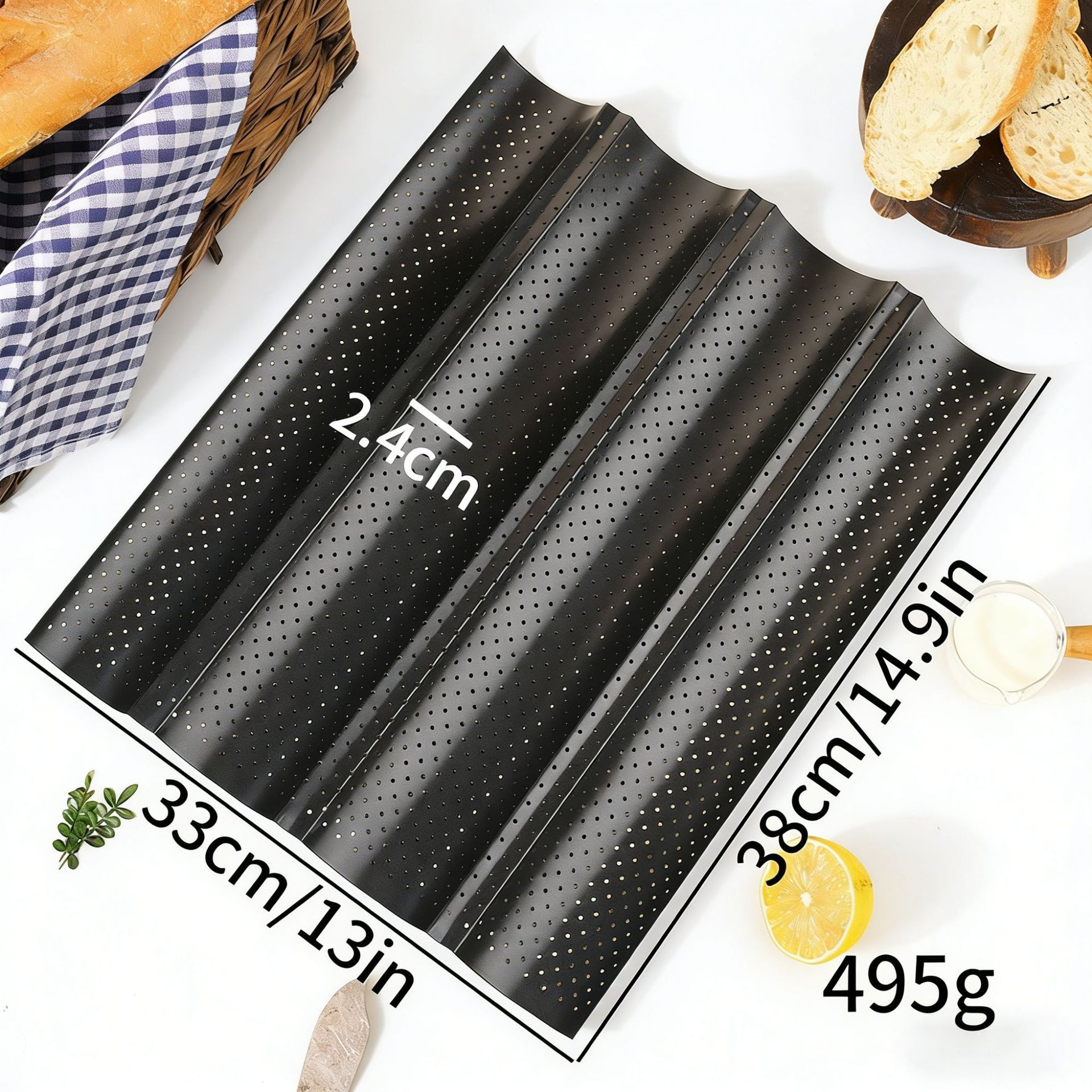 【Usage】: Baking baguette, French bread, long stick, short stick, long strip bread, cookie molding, etc.
