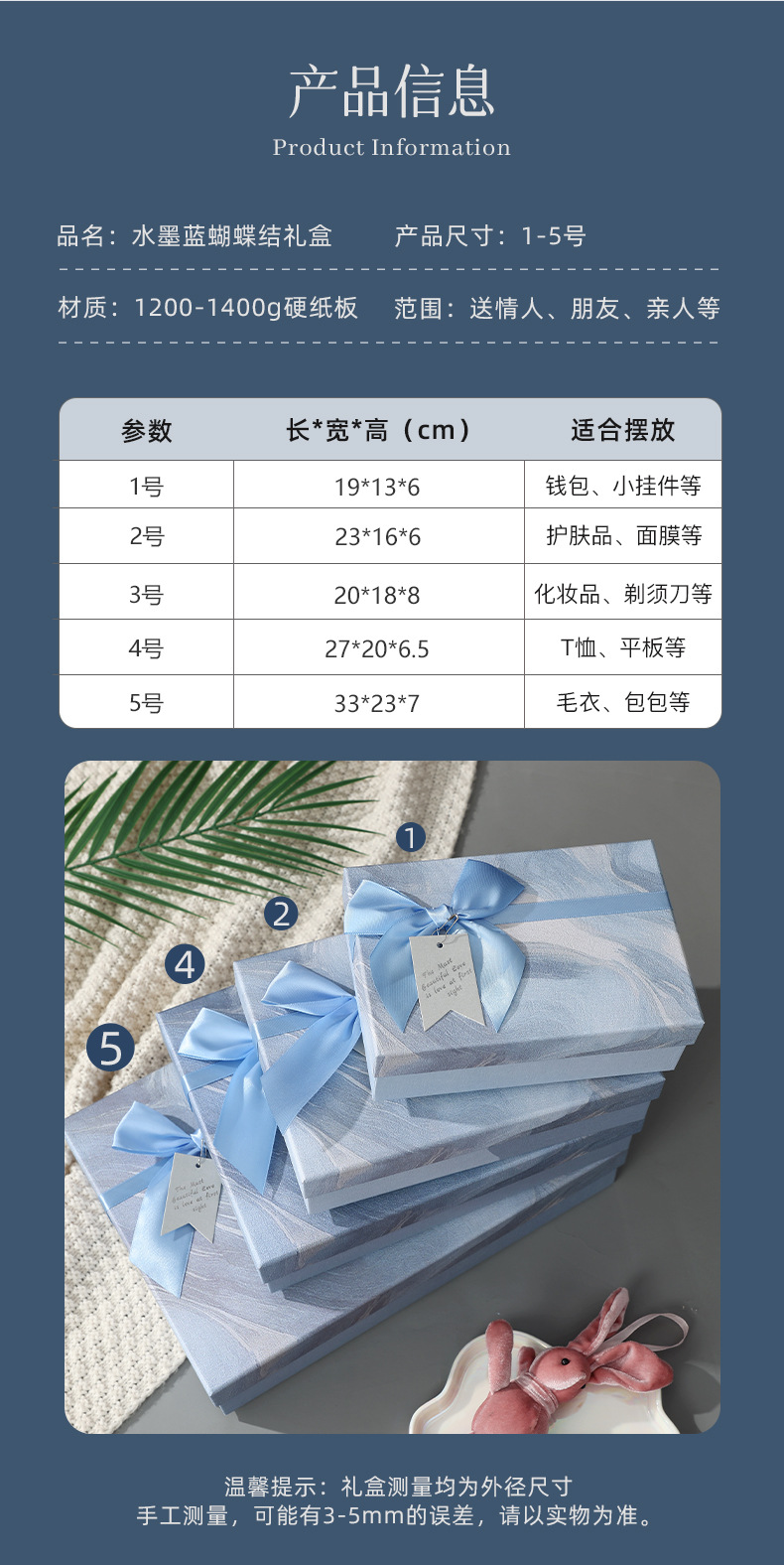 ink blue bow gift box; no.7 34.8*24.8*11.5cm