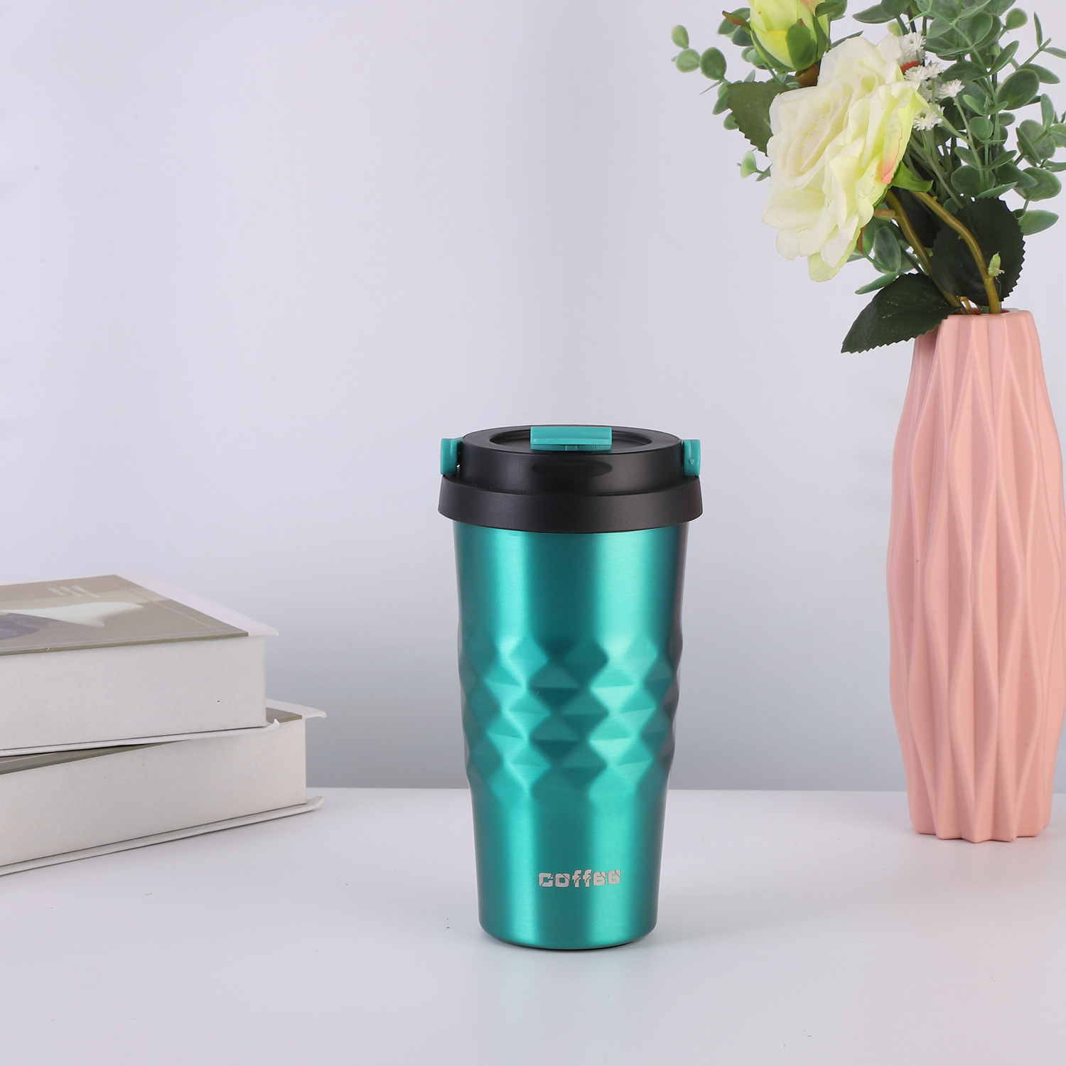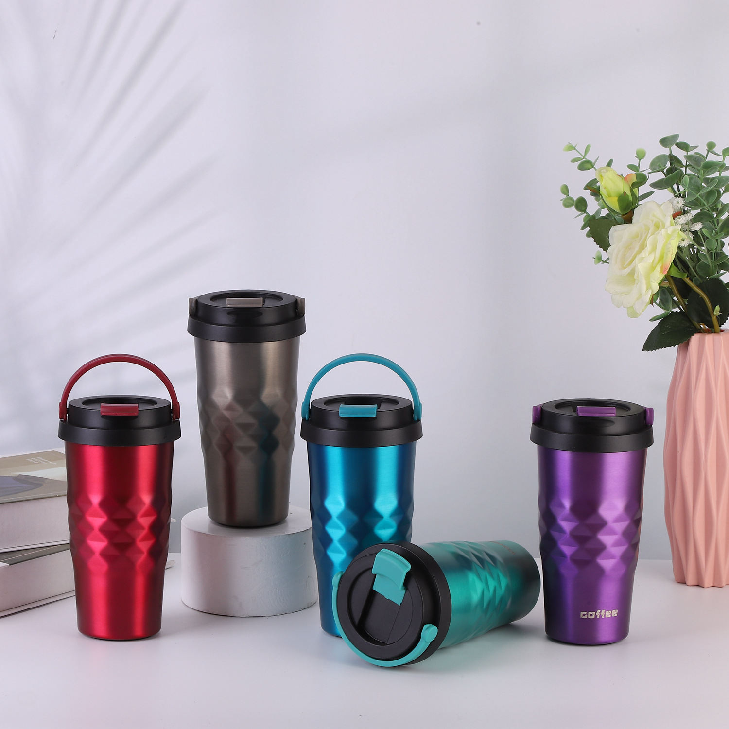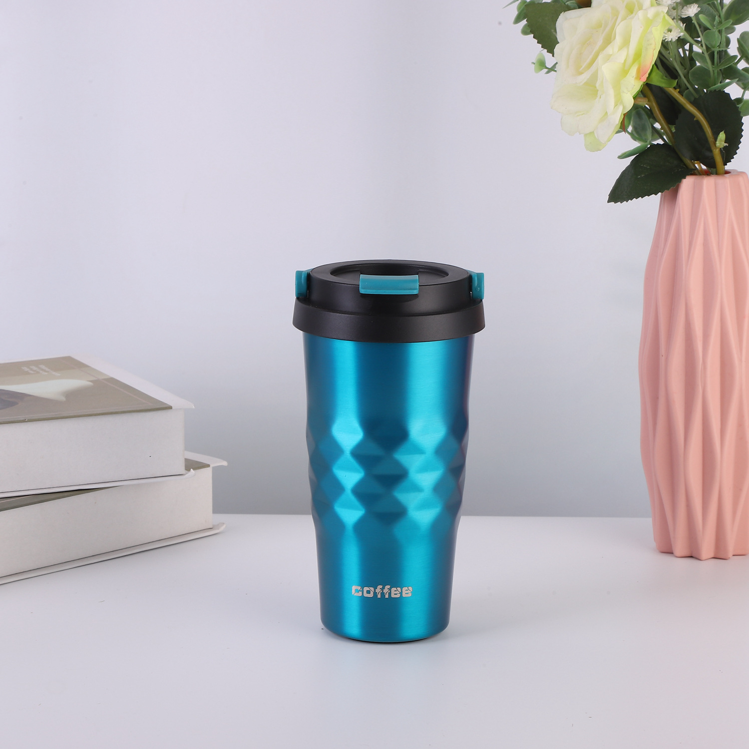 Colorful and Simple Coffee and Water Bottle, with a colorful design and a classic rhombus shape.Double-layer stainless steel vacuum insulation, insulates both heat and cold.