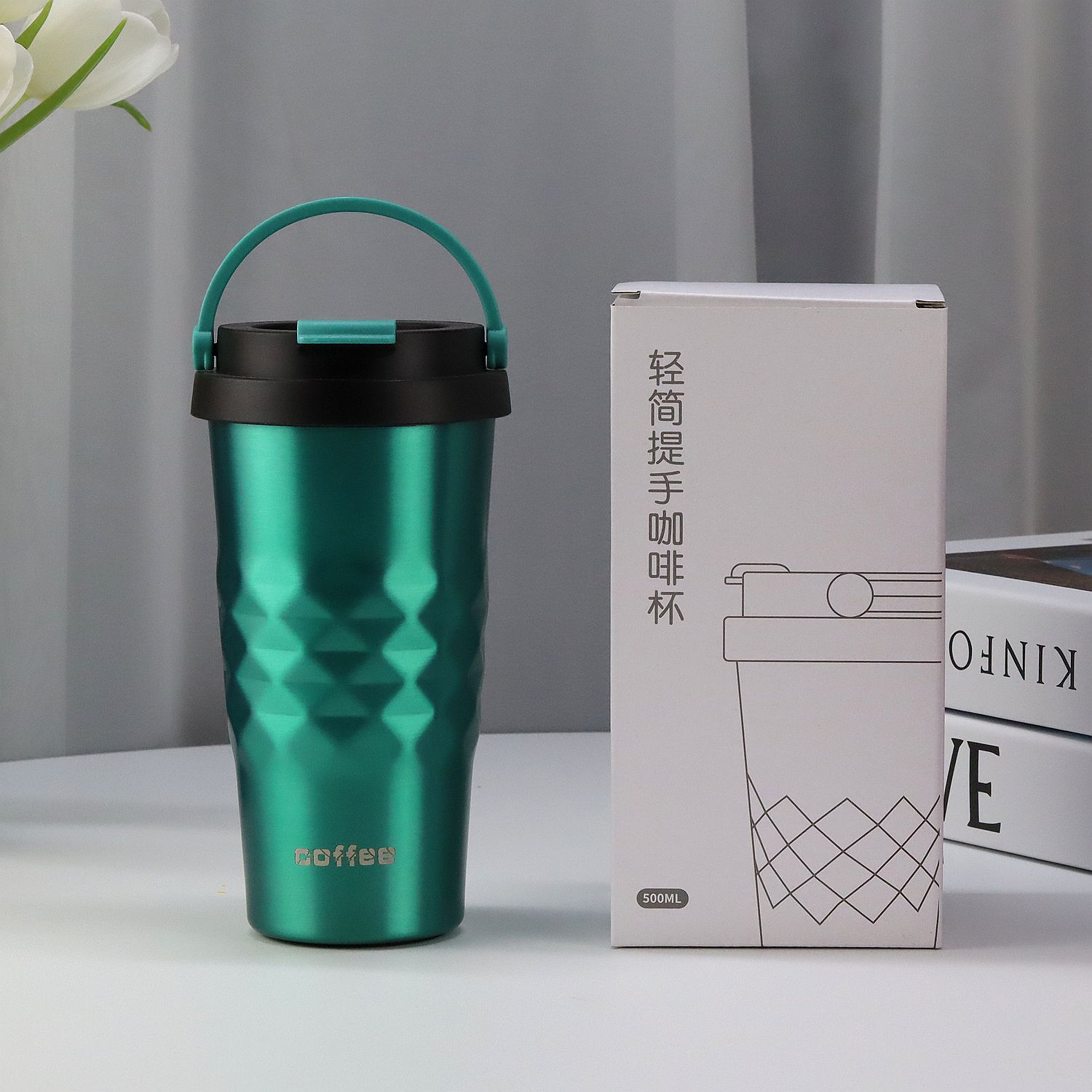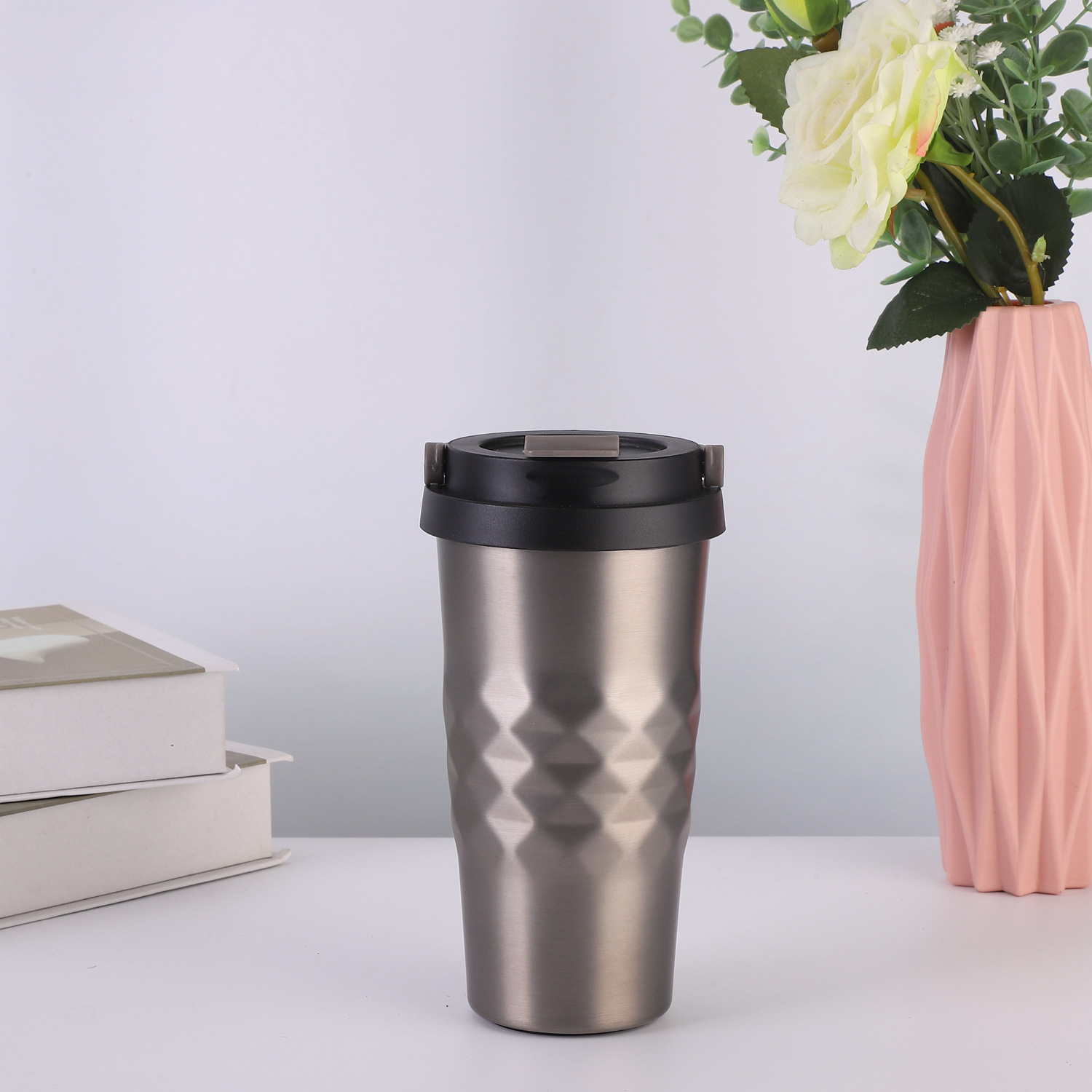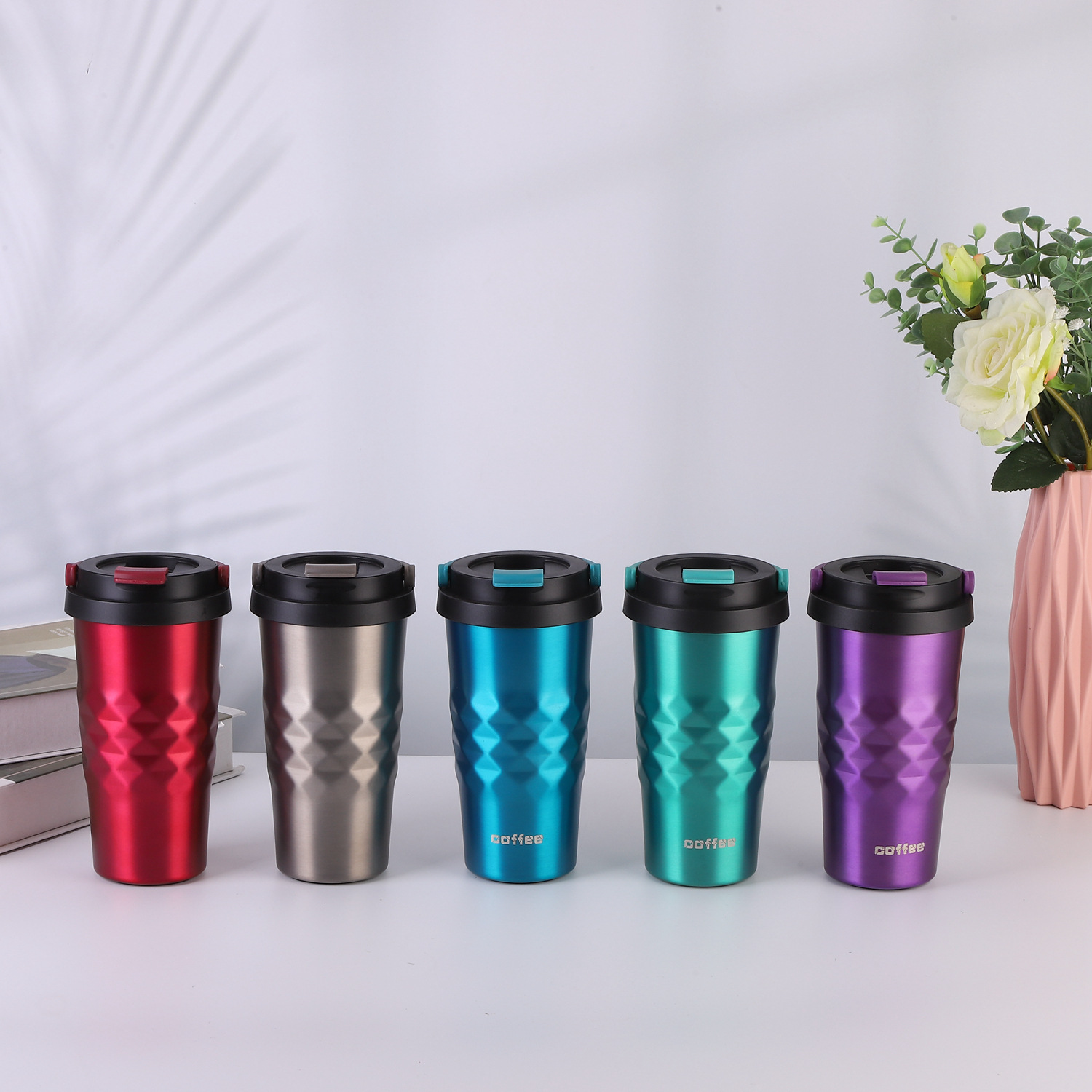 Colorful and Simple Coffee and Water Bottle, with a colorful design and a classic rhombus shape.Double-layer stainless steel vacuum insulation, insulates both heat and cold.
