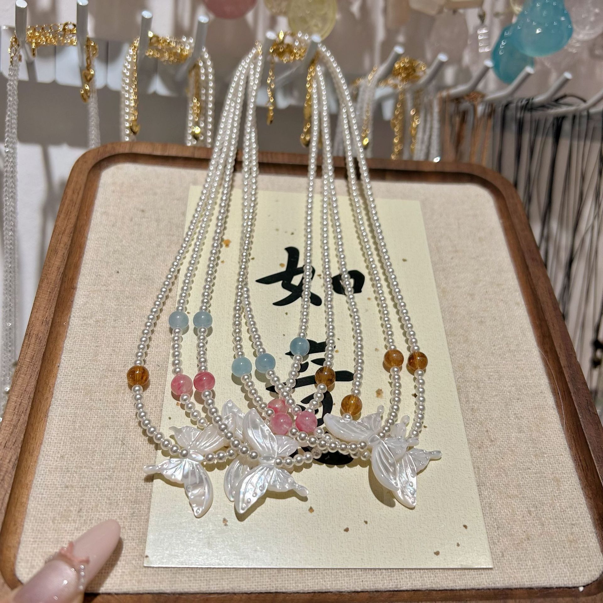 shell pearls butterfly necklace