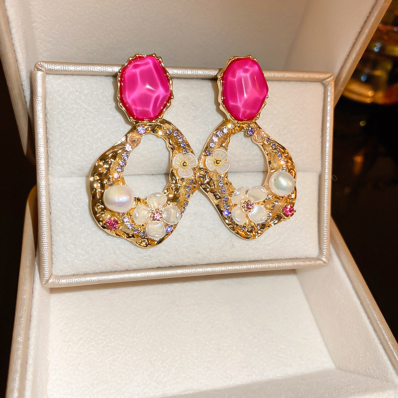 silver needle-rose flower geometric ear studs
