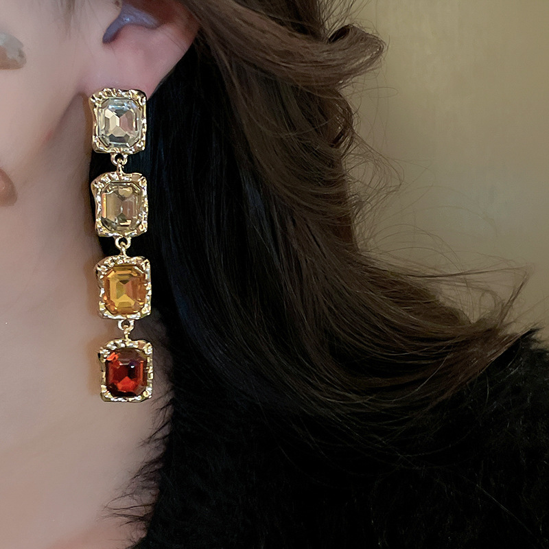 silver needle-color diamond square eardrops