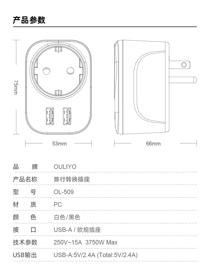 ol-509 (us to eu adapter, 2.4a)