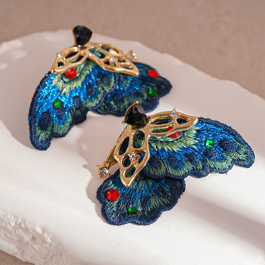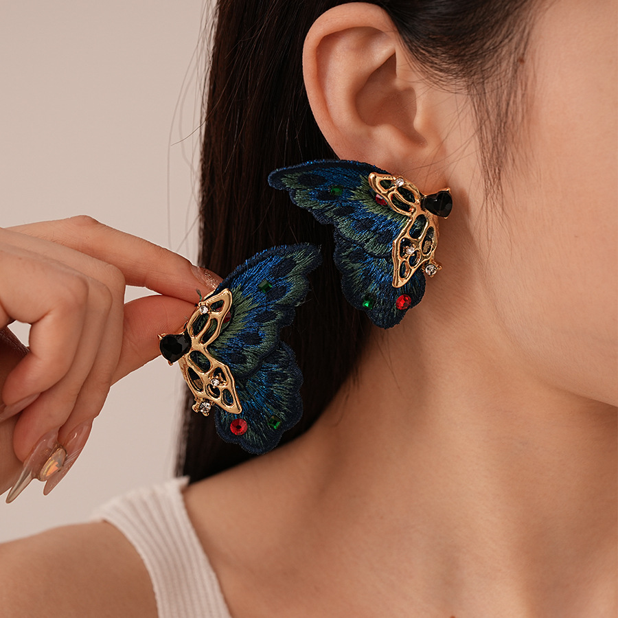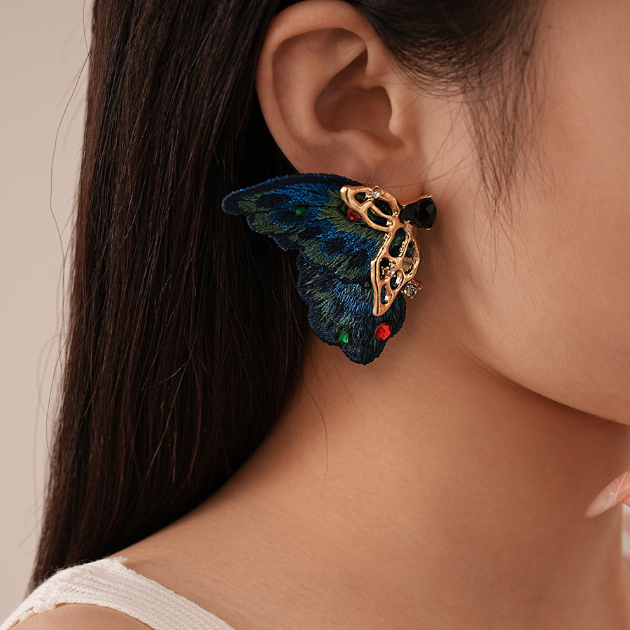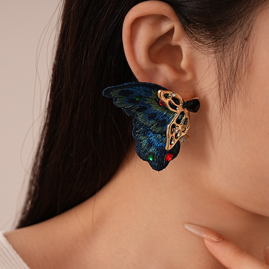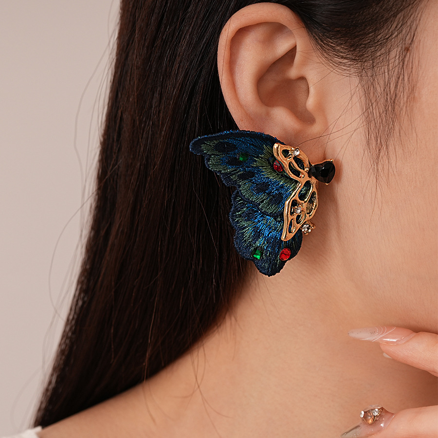 silver needle-blue butterfly studs