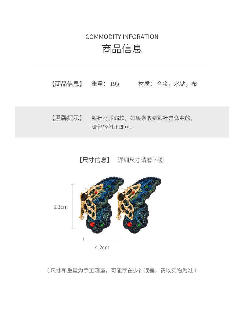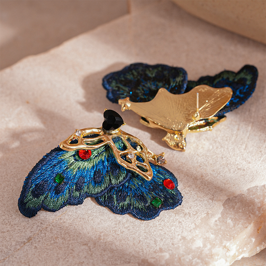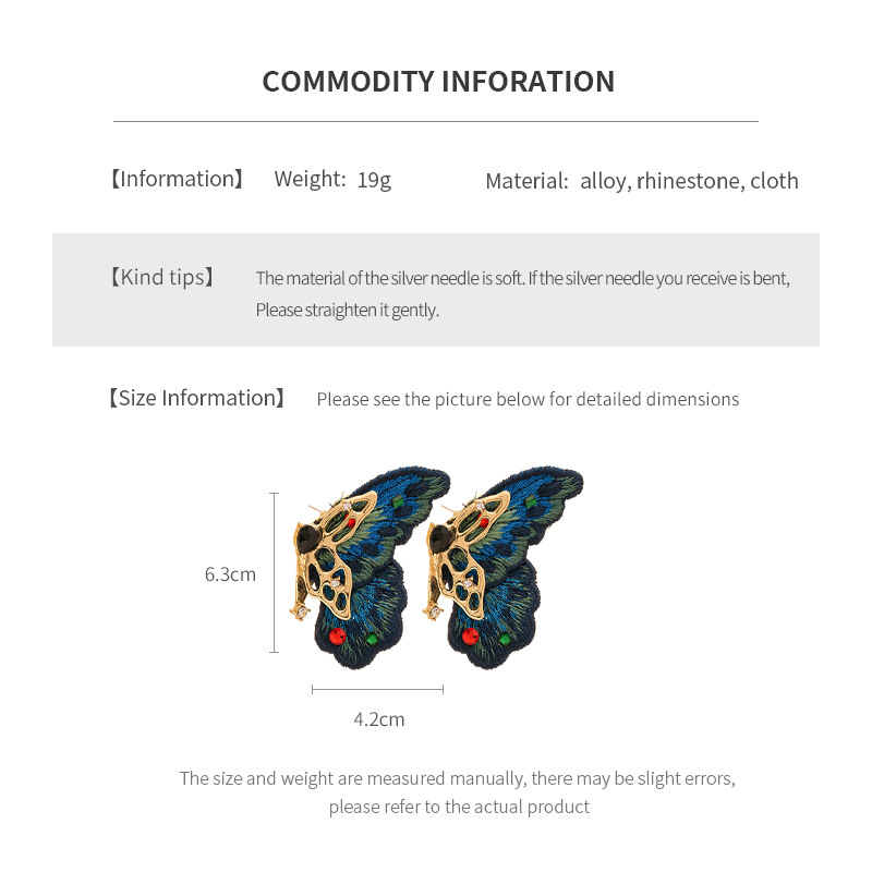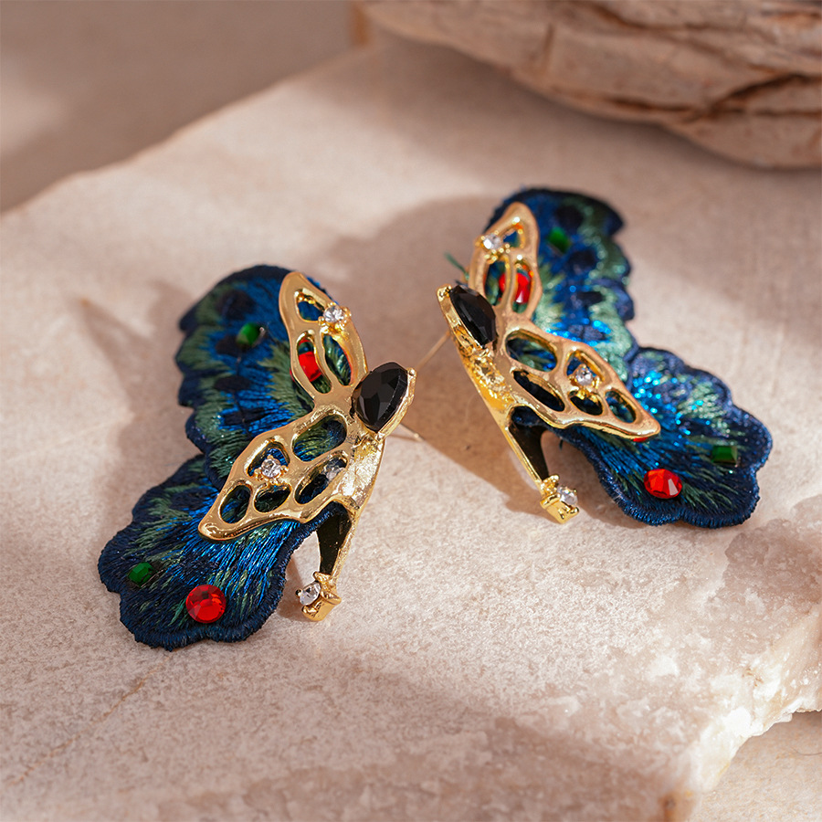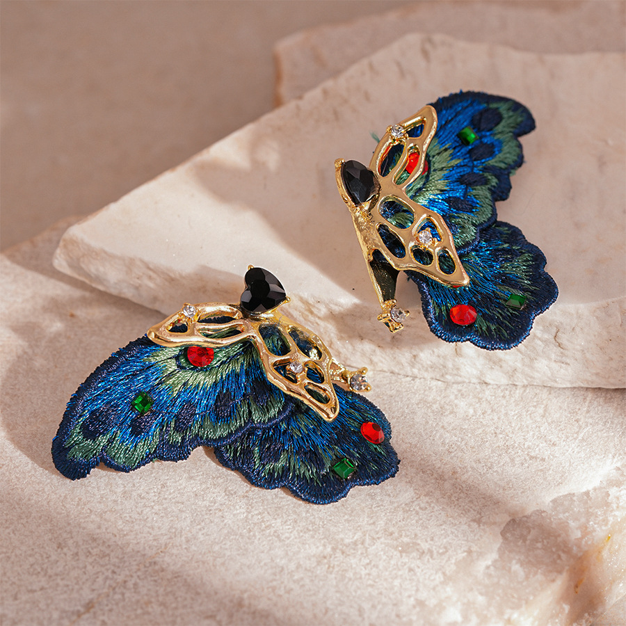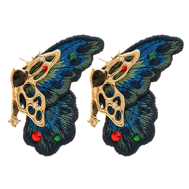 silver needle-blue butterfly studs