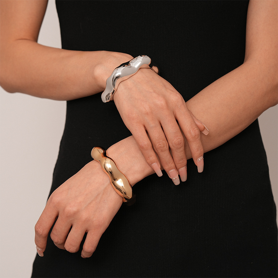 #13 golden bright surface irregular open-ended bracelet