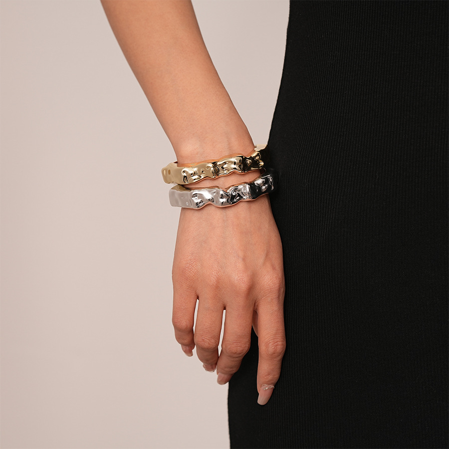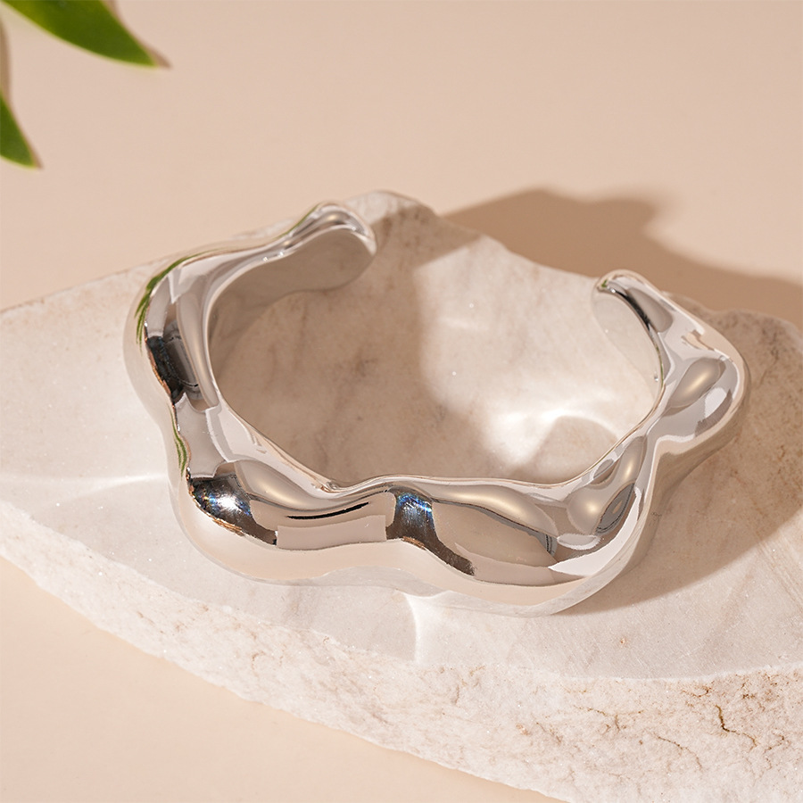 #14 silver shiny surface irregular open-ended bracelet