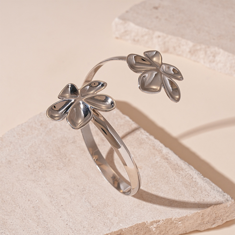 #26 silver flowers openings bracelet armband