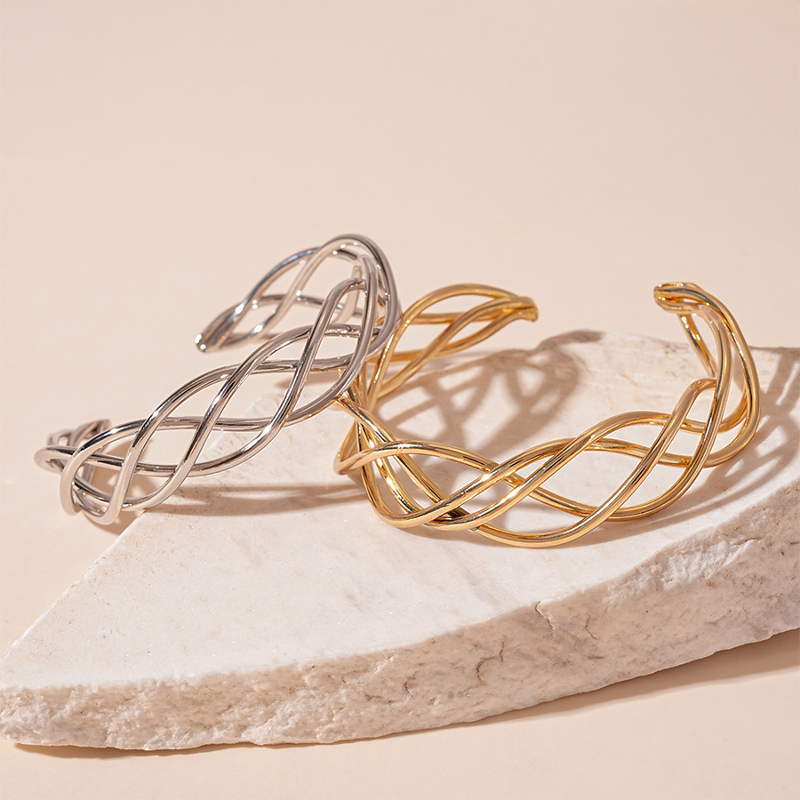 #48 gold titanium steel twist open-end bracelet