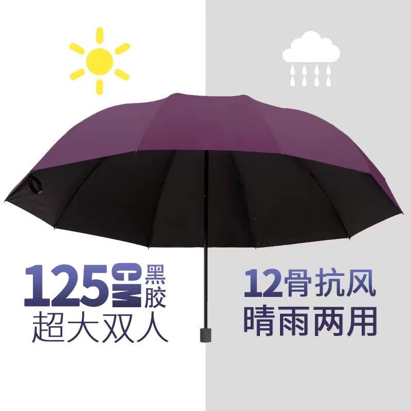 [manual] 12-rib 3-person extra-large storm-proof big umbrella-deep purple