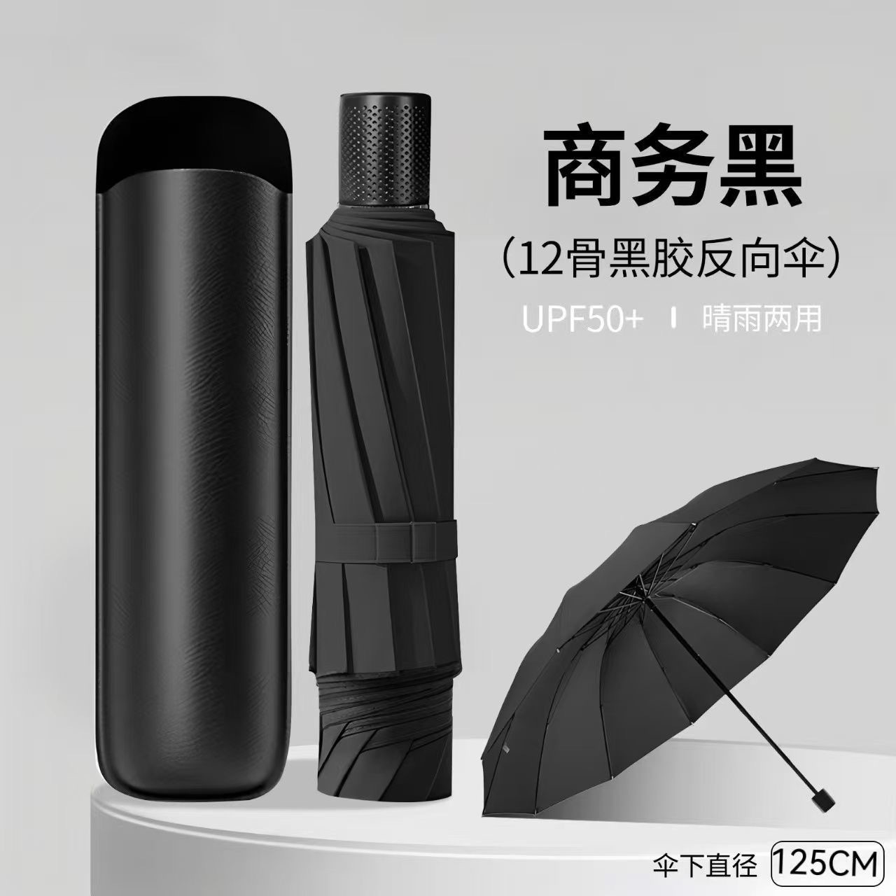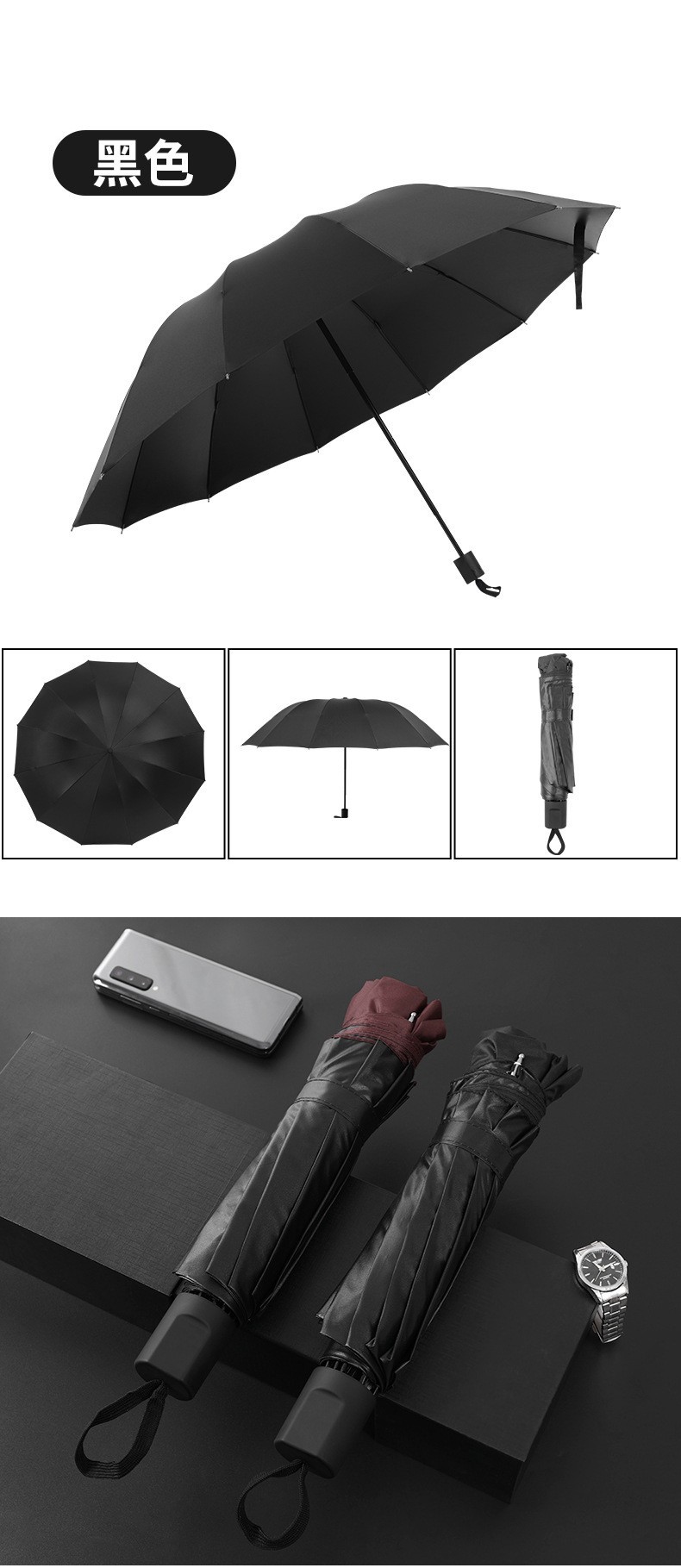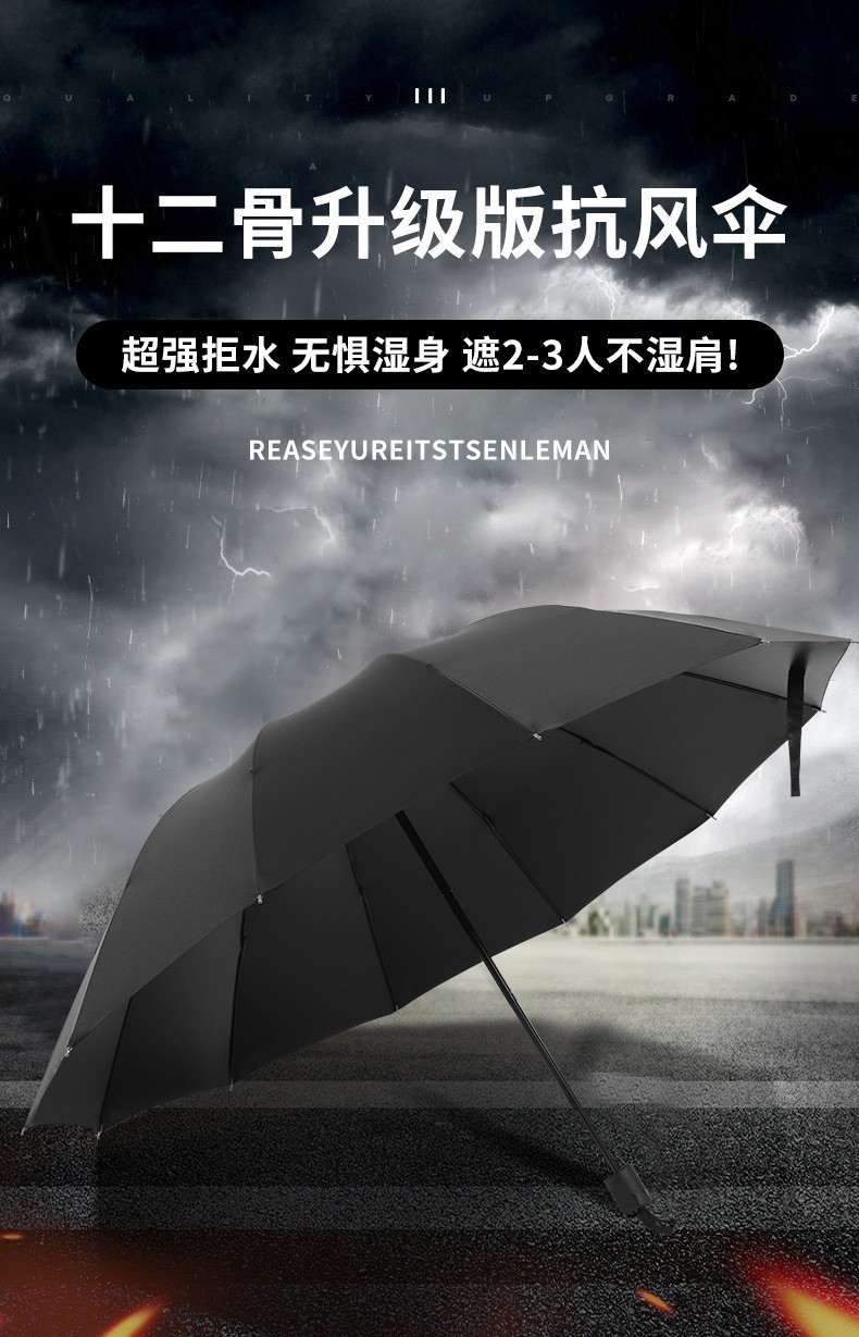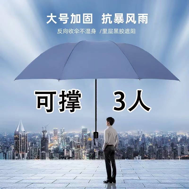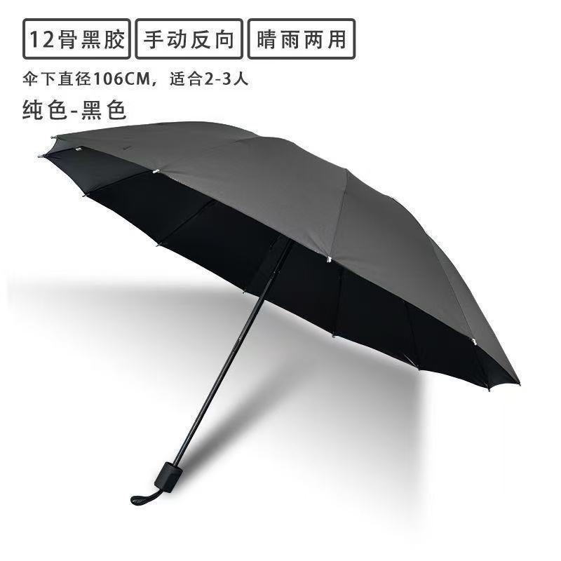 [manual] 12-bone 3-person storm-proof large reverse umbrella-black-free leather case