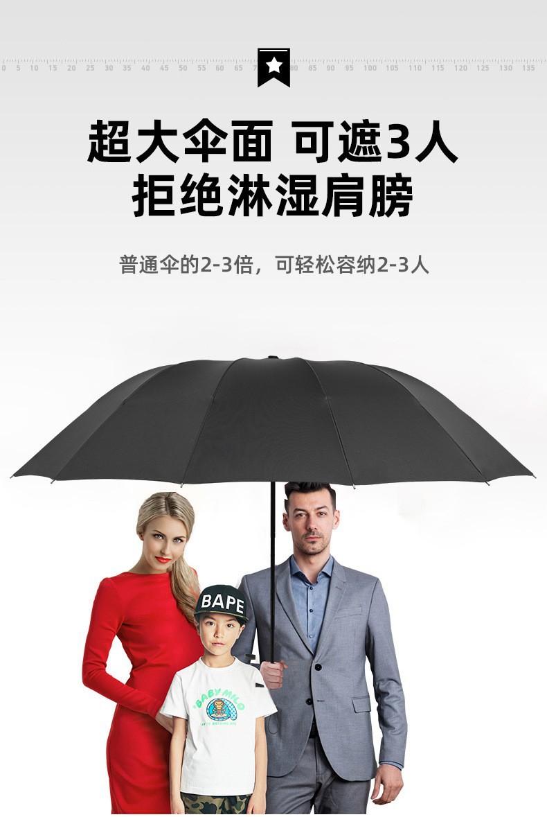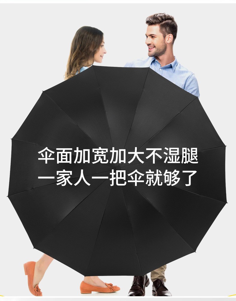 [manual] 3-person extra-large storm-proof big umbrella with ten ribs-black