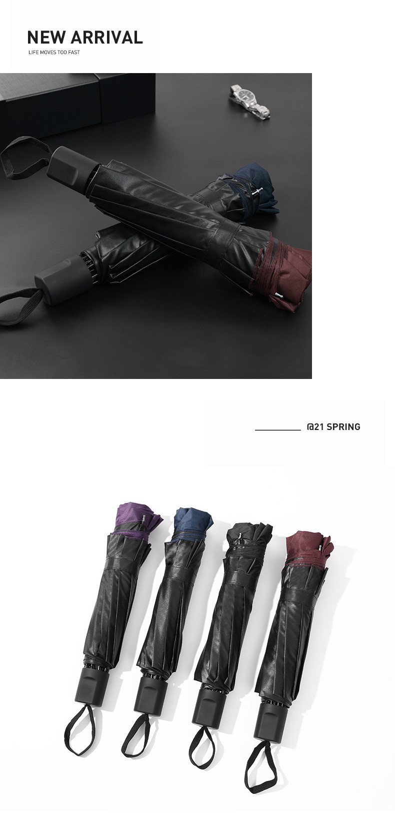 [manual] 12-bone 3-person storm-proof large reverse umbrella-baolan-with leather case as gift