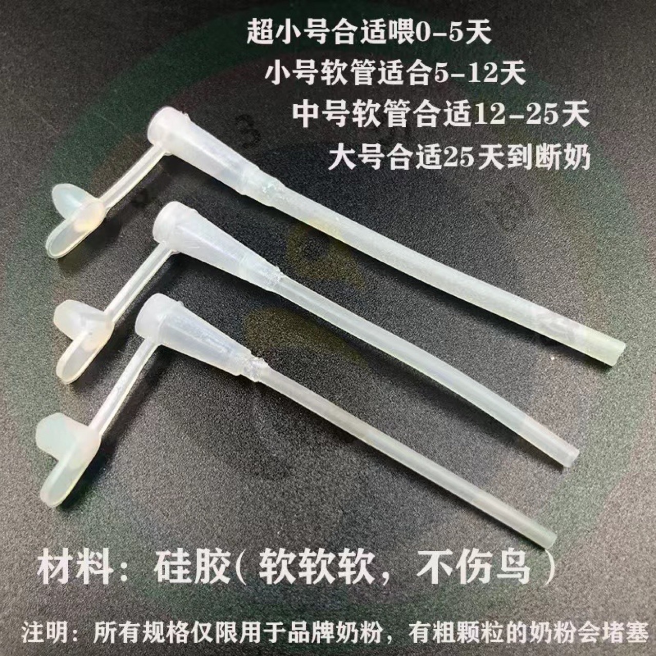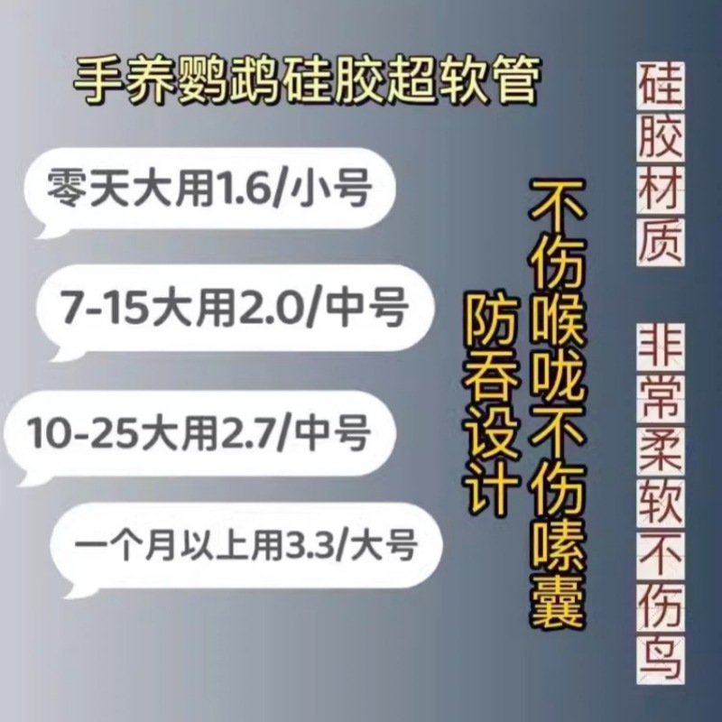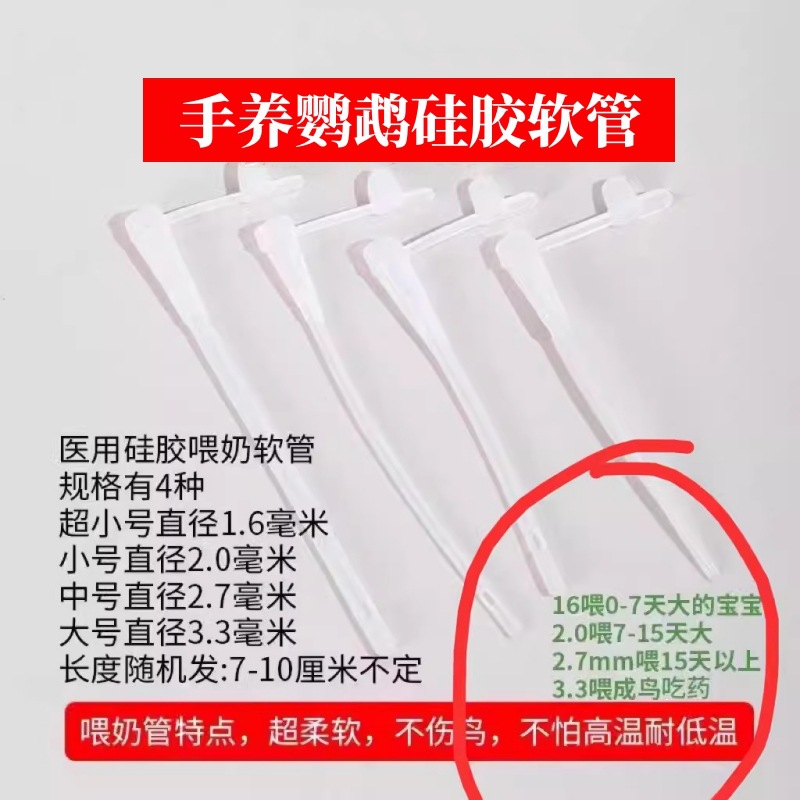 1.6mm diameter, 6-6.5cm in length, suitable for feeding 0-5 day-old small parrots