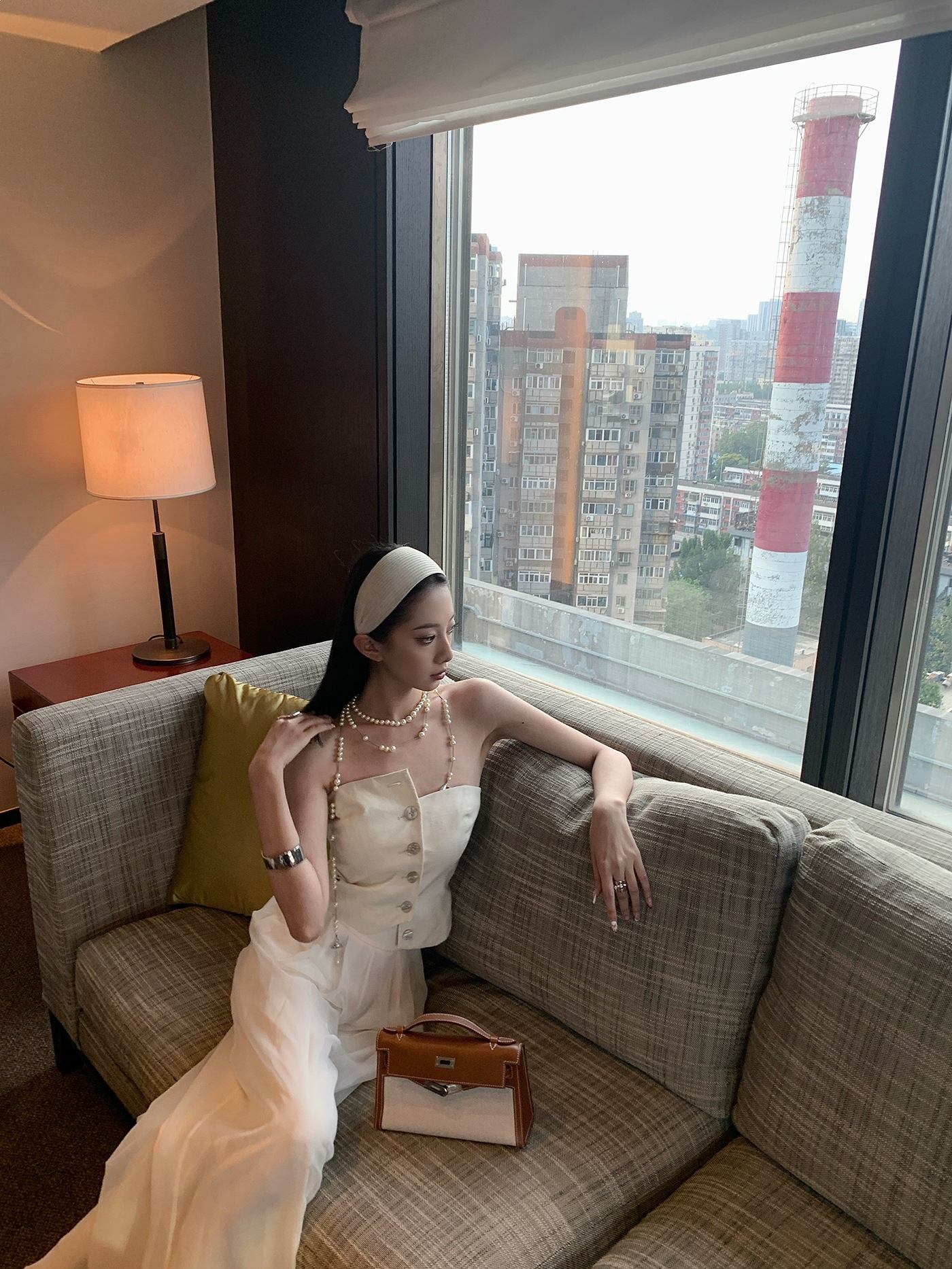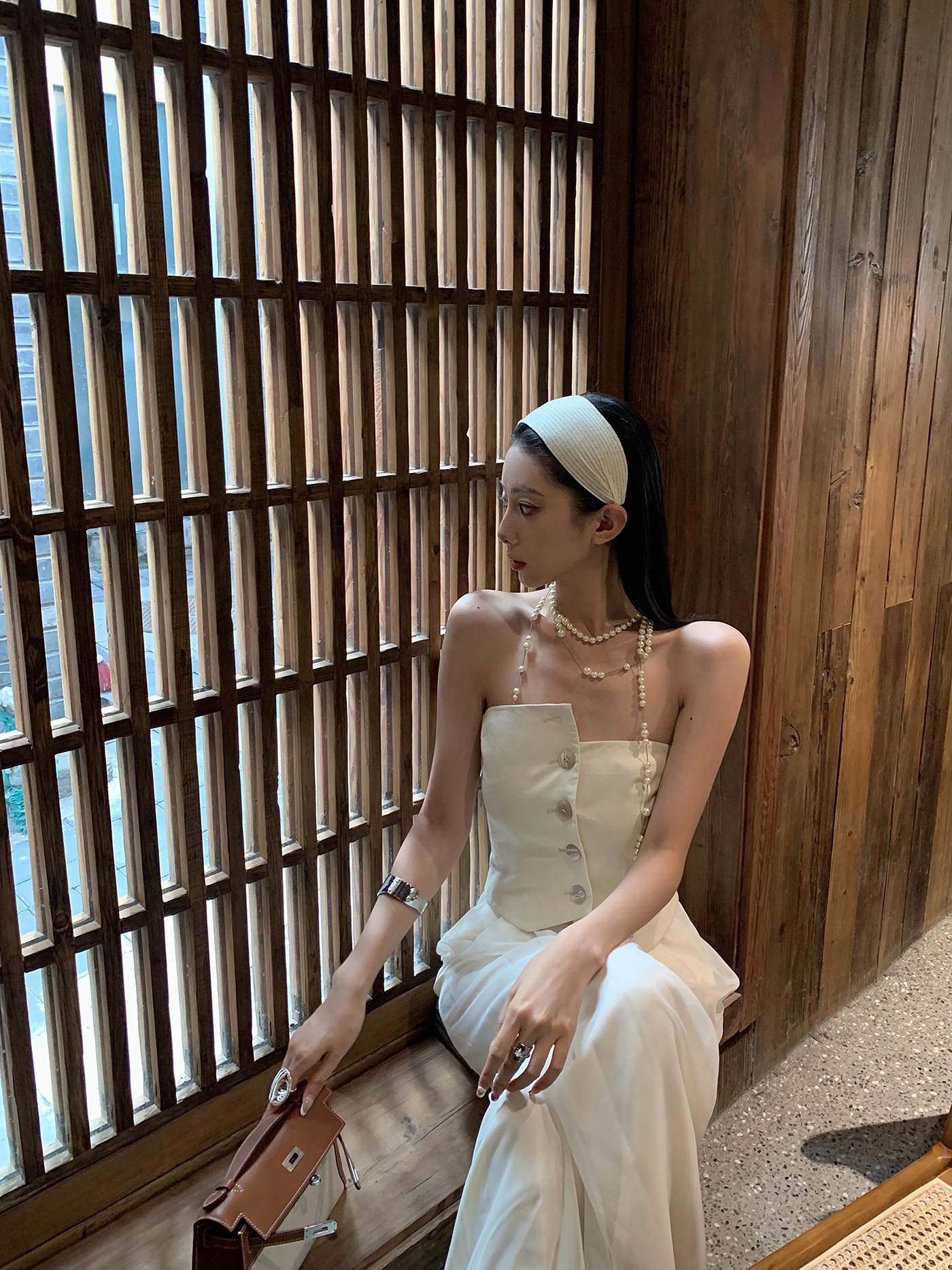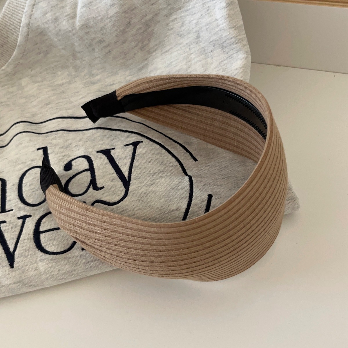 f4-11# all-match knitted wide brim hair band [beige]]