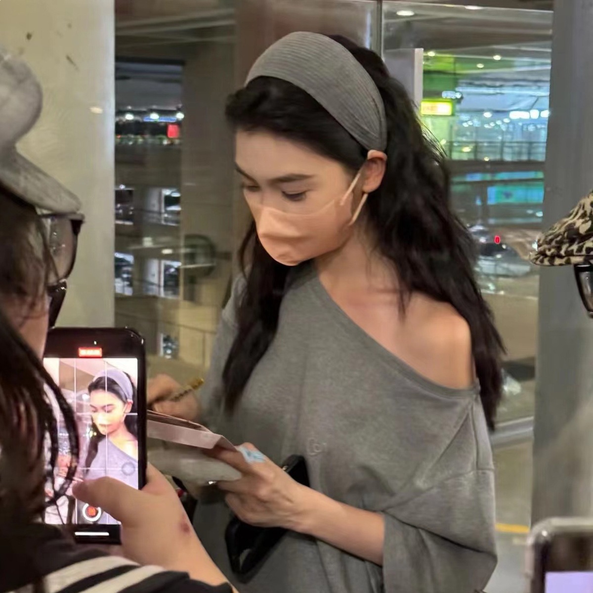f4-15# all-match knitted wide brim hair band [light gray]