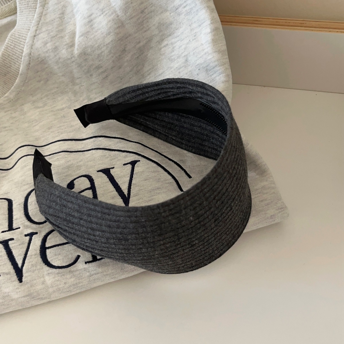 f4-14# all-match knitted wide brim hair band [dark gray]