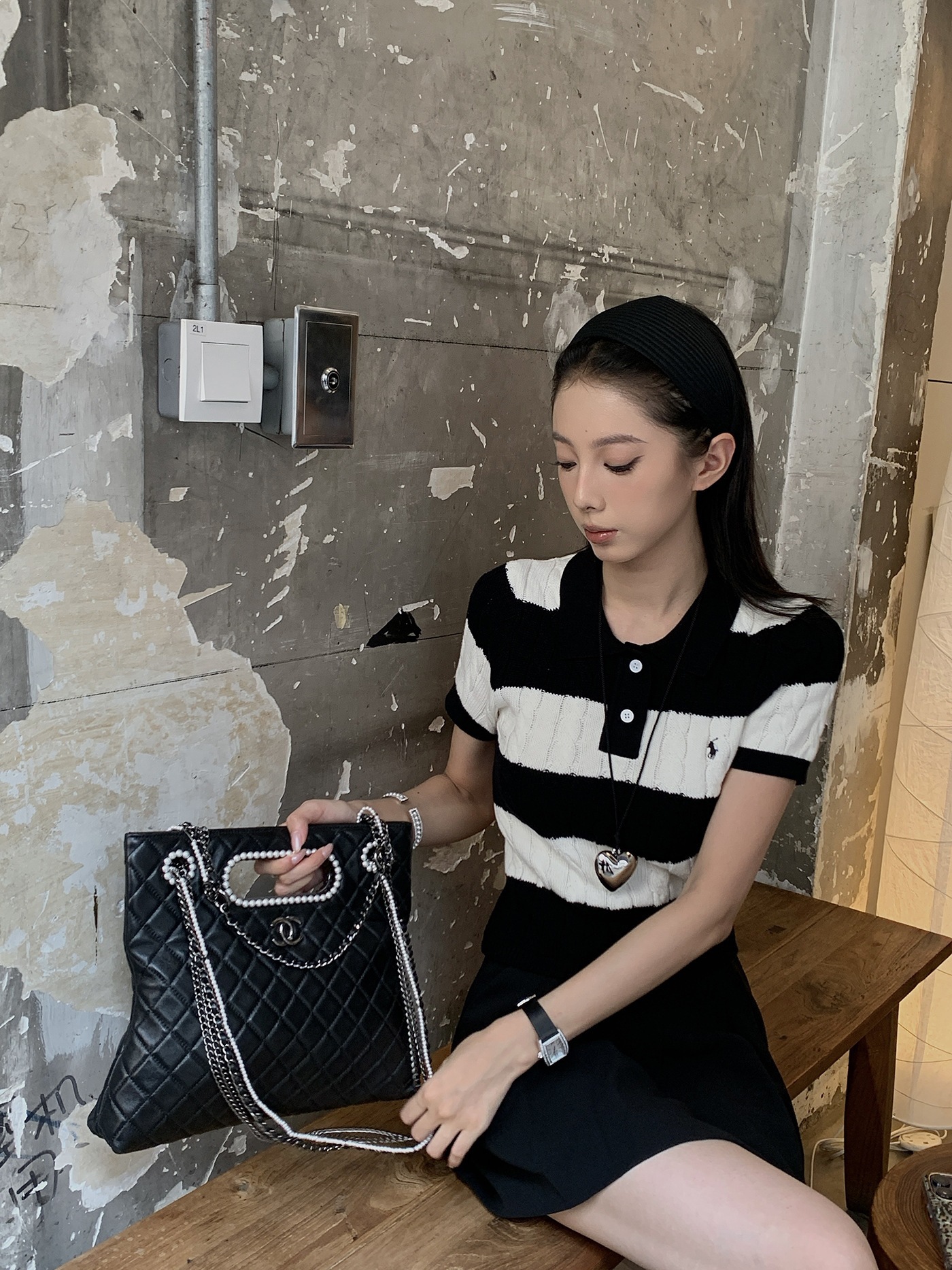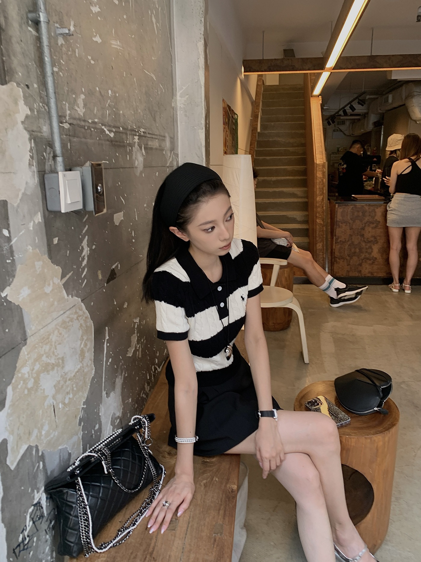 f4-12# all-match knitted wide brim hair band [black]