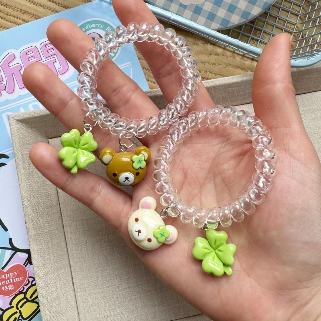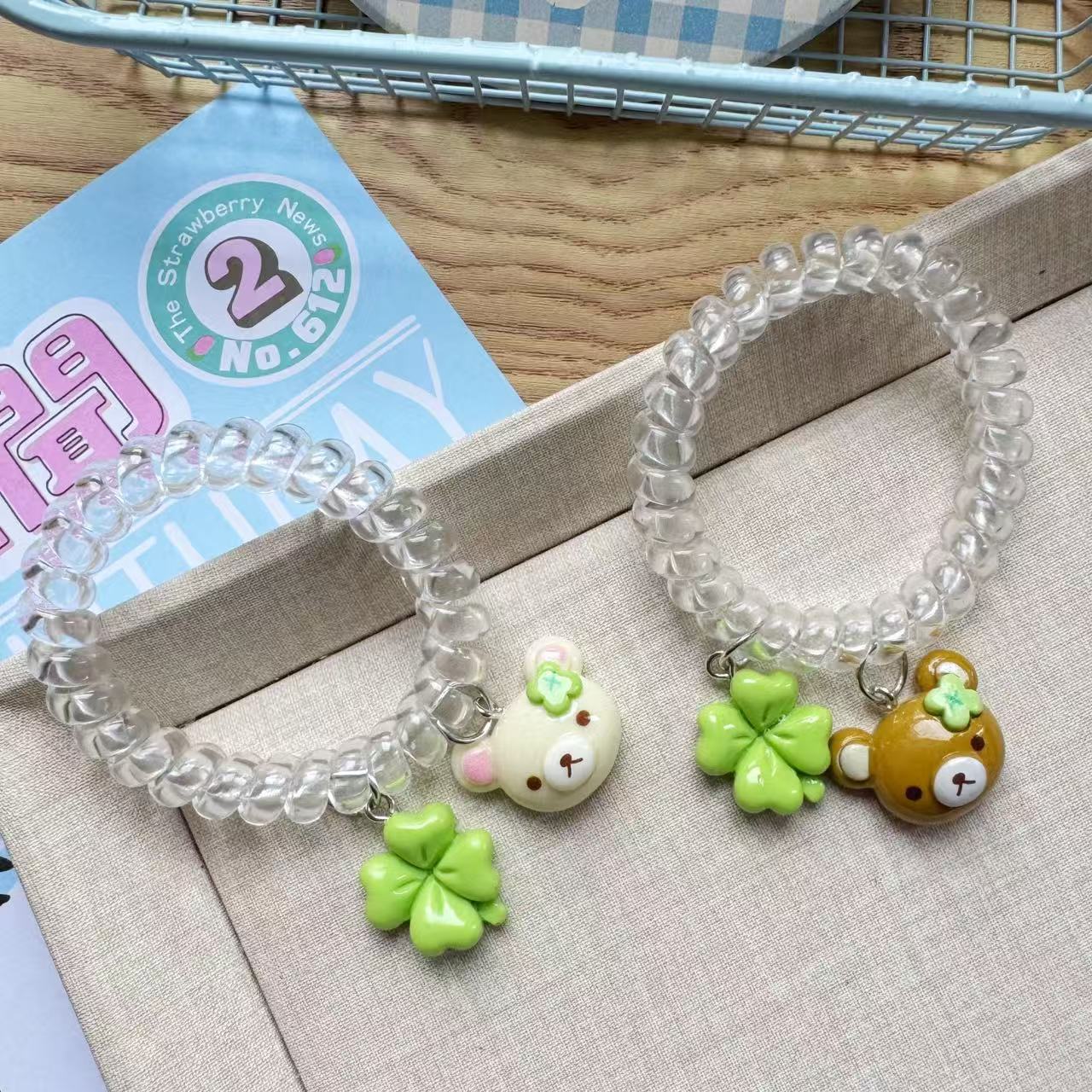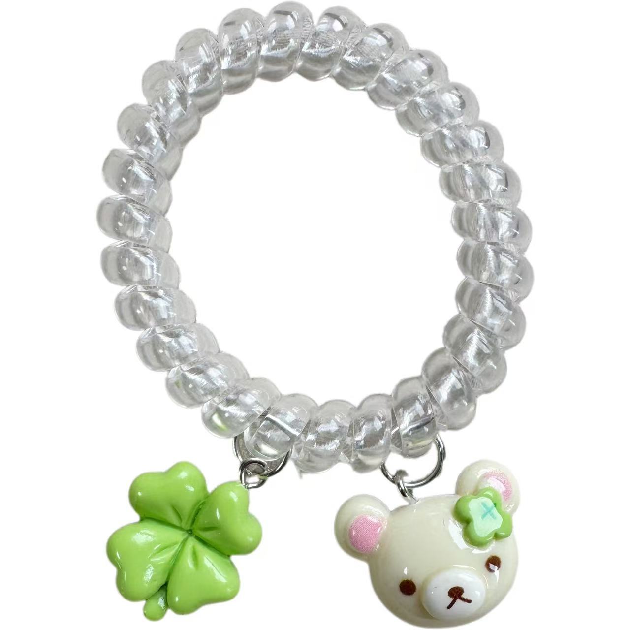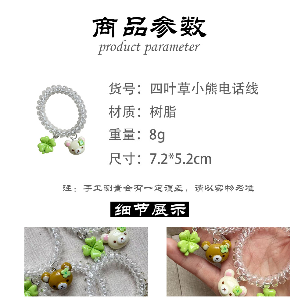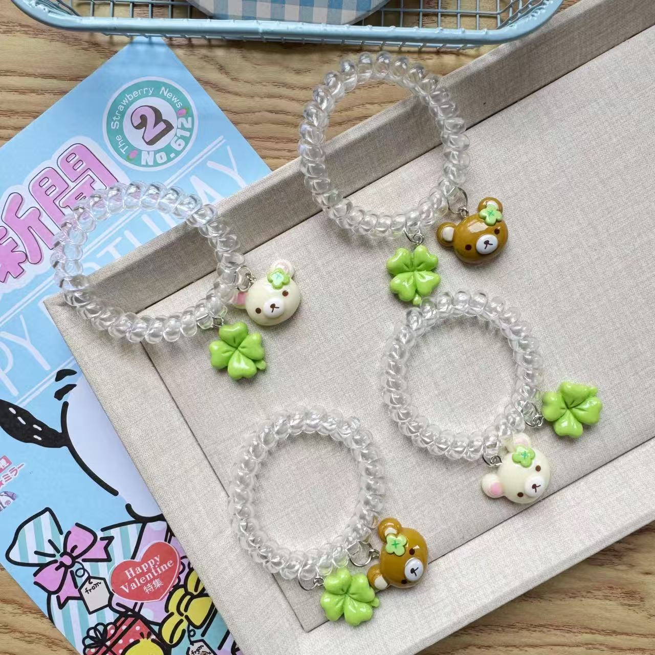 transparent four-leaf clover little bear hair tie [coffee]