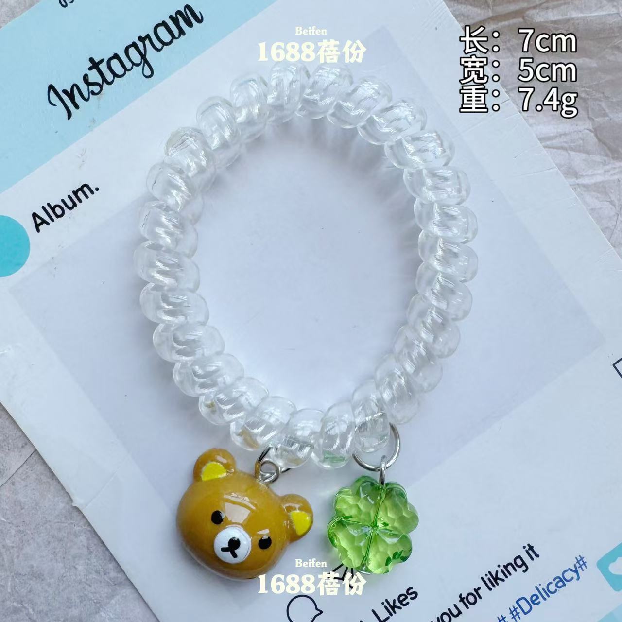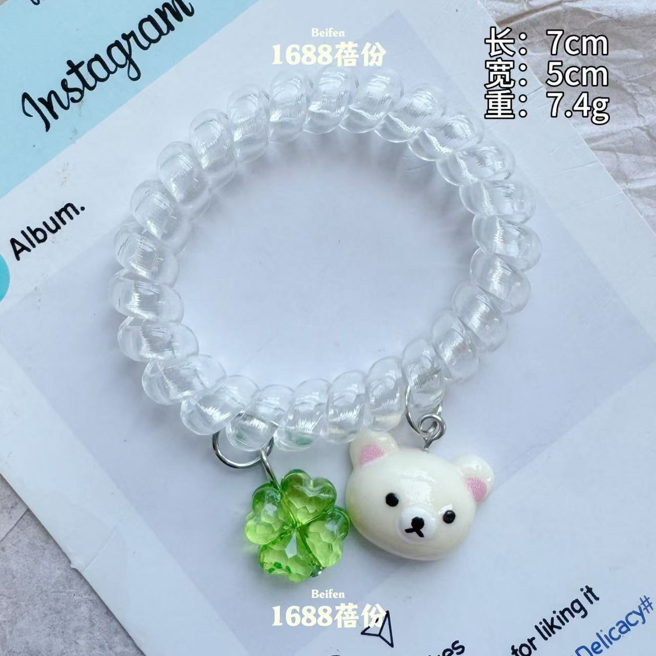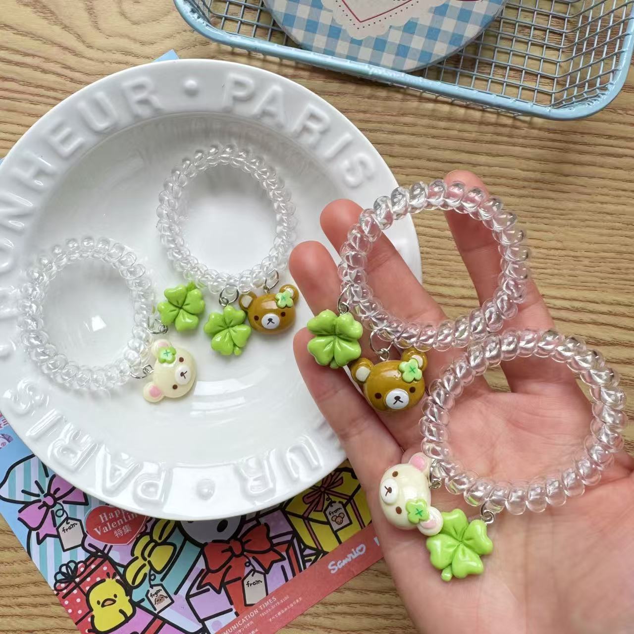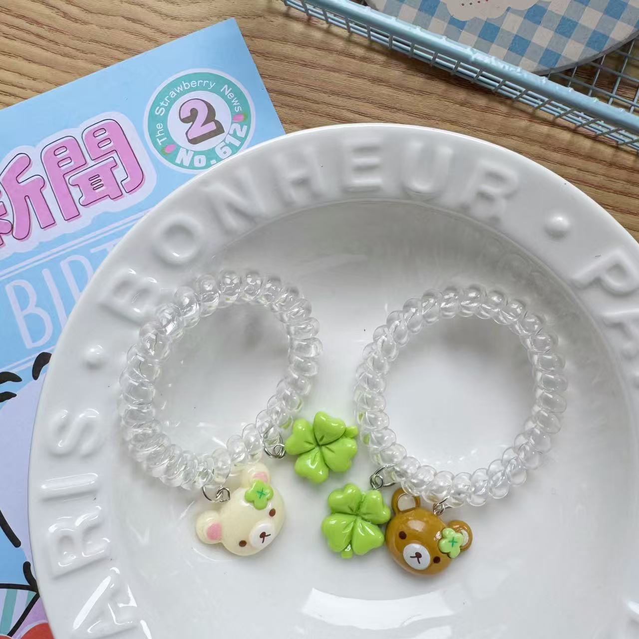 transparent four-leaf clover little bear hair tie [coffee]