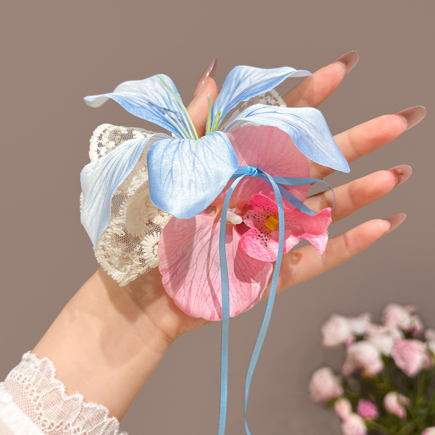 blue pink flowers barrettes